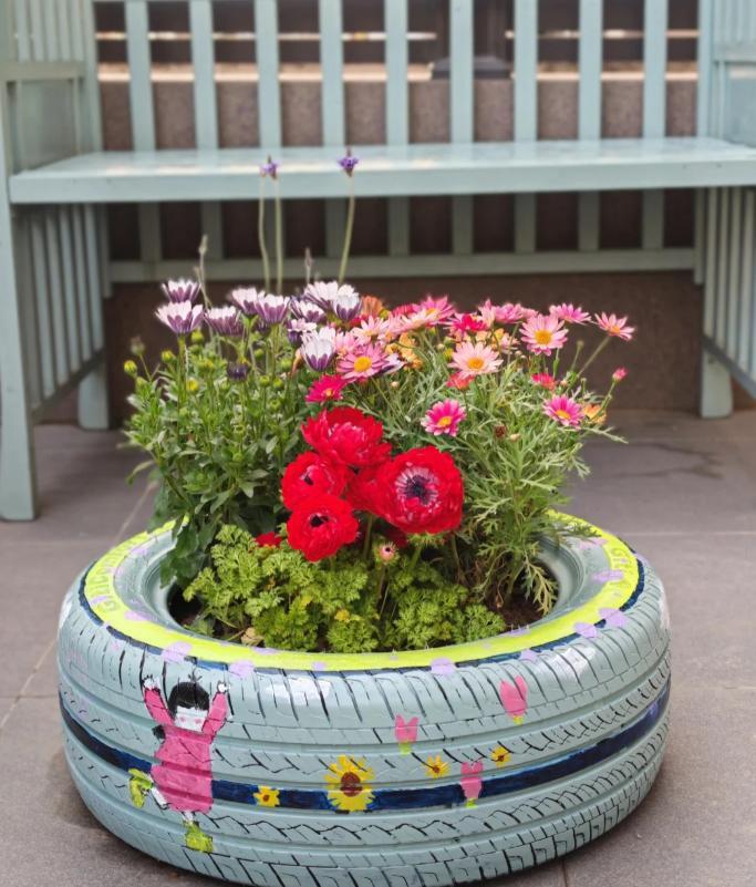 不管是北京的網友,還是安徽的老師,都把輪胎當花盆用了,這麼一看果真太實用了!
