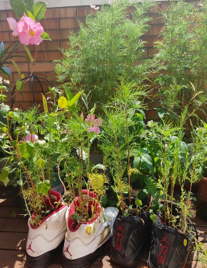 舊鞋子,終於找到用處了!我居然用這些不穿的舊鞋,種出了這麼多的小花和小草,你還真別說,一排排的還挺好看!
