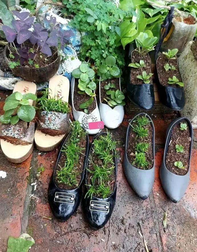 鞋子不穿了,也可以直接拿來養花,不管是多肉還是其他花卉,都沒問題~