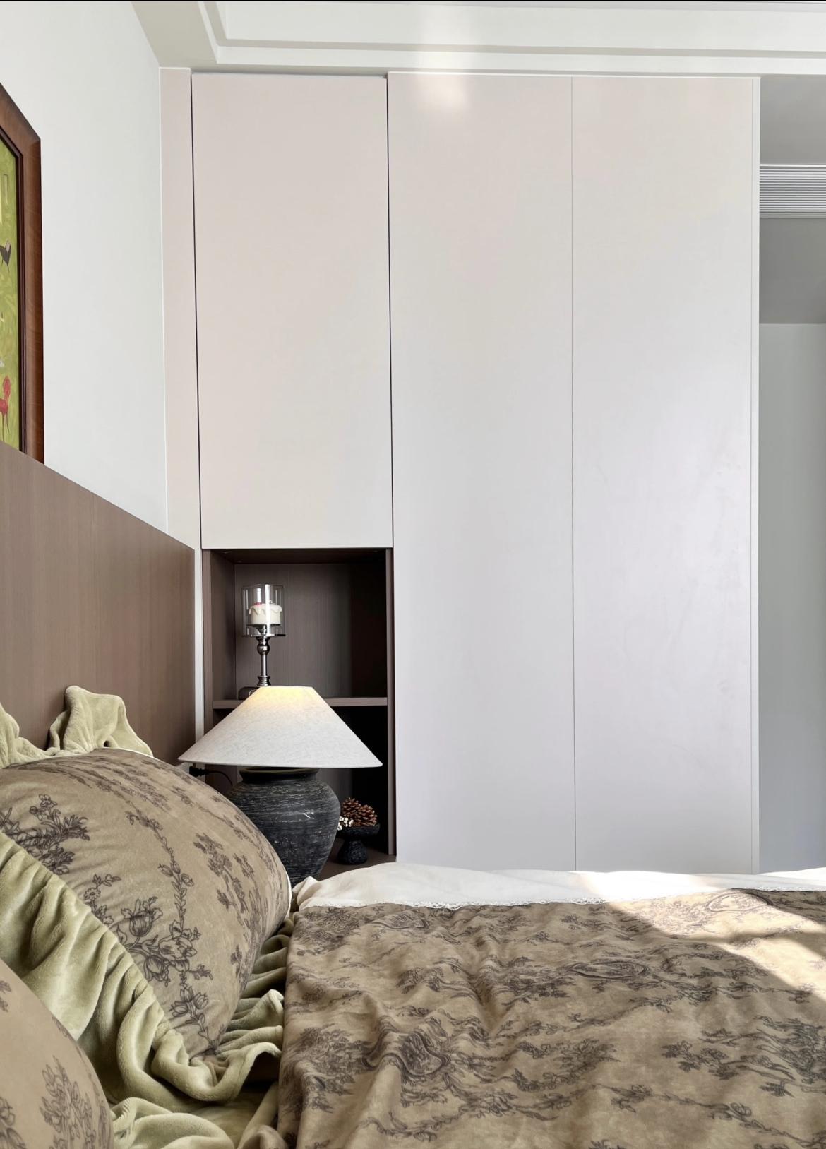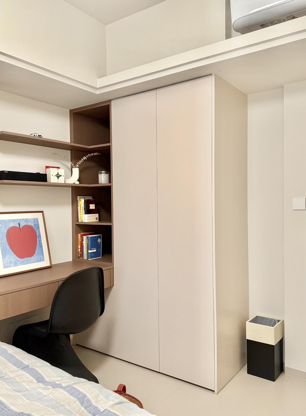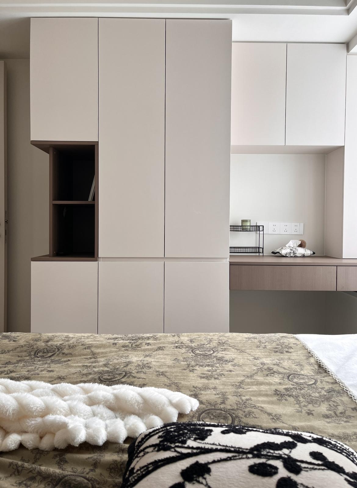 牀尾是化妝櫃+男士衣櫃+文件收納櫃,主要放置我們的各類證件;