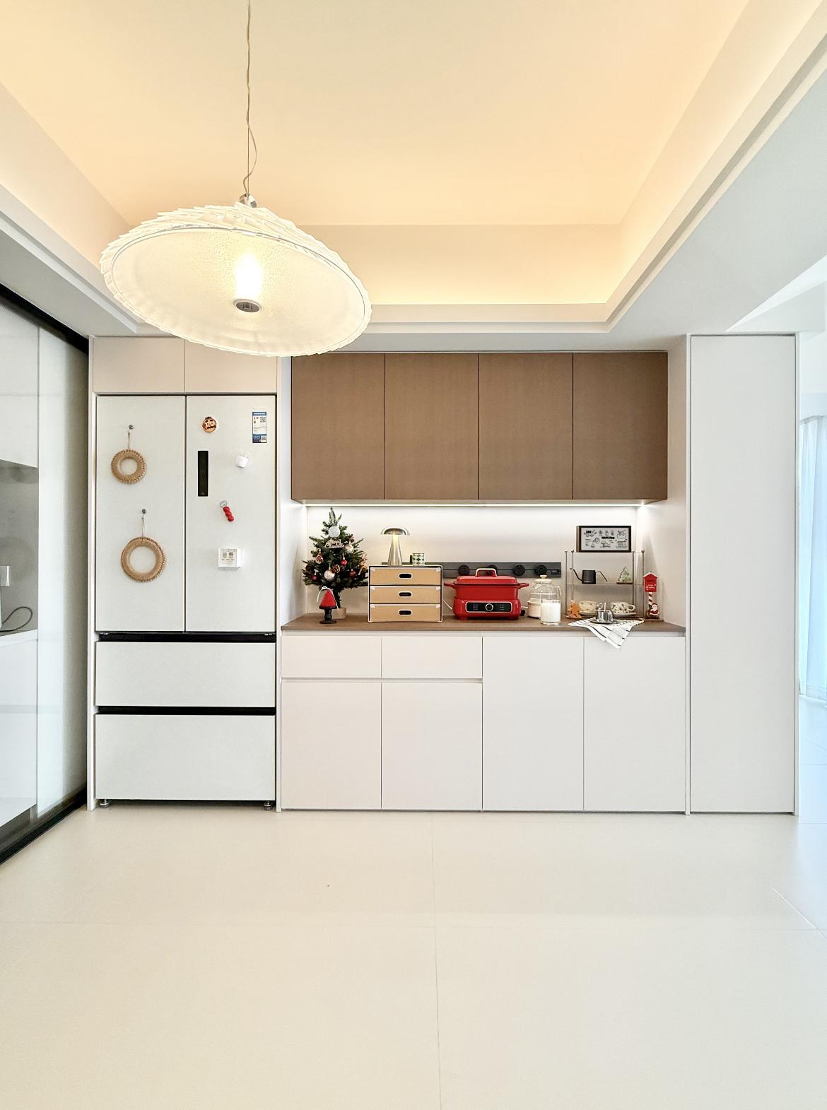 暖光從吊頂漫下來,喫飯時廚房的煙火氣透過玻璃門透出來;小戶型哪是“擠着過”?明明是把每寸空間都用成了“好看又能裝”的治癒場!