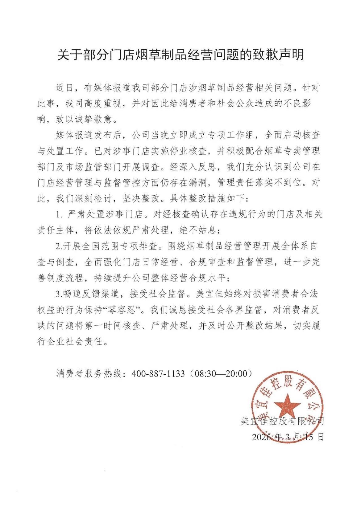 廣東省菸草專賣局連夜行動,排查門店6325家,查獲非法捲菸139.99萬支,立案306宗,涉事門店全部停業整頓,美宜佳總部發布致歉聲明,開展全國門店拉網式排查。此外,一次性內褲、衛生巾等日用品代工廠存在的未滅菌、以次充好、僞造檢測報告等問題,也被監管部門突擊檢查,問題產品全部下架,生產企業被責令停產整改,電商平臺同步清理相關違規商品。