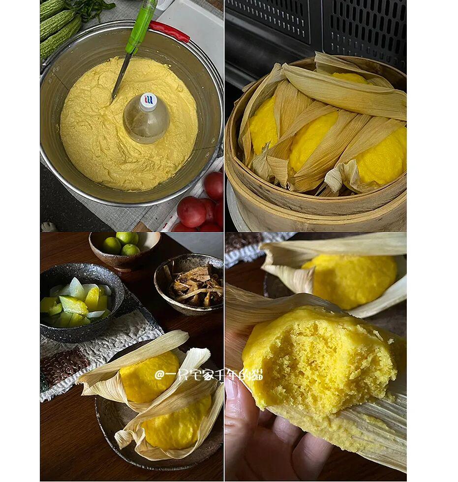 和普通的玉米饅頭比,用玉米葉蒸得到味道更淳樸,既有玉米的清香又有玉米的香甜,早上喫一個配上牛奶,簡直絕了啊 !超滿足~