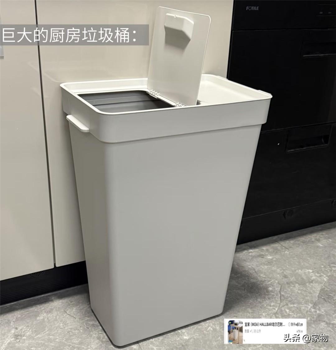 大號廚房垃圾桶,比起普通的垃圾桶來說不僅是容納空間更大,同時也做了加高處理,丟棄廚餘垃圾更順手,不易弄得到處都是。