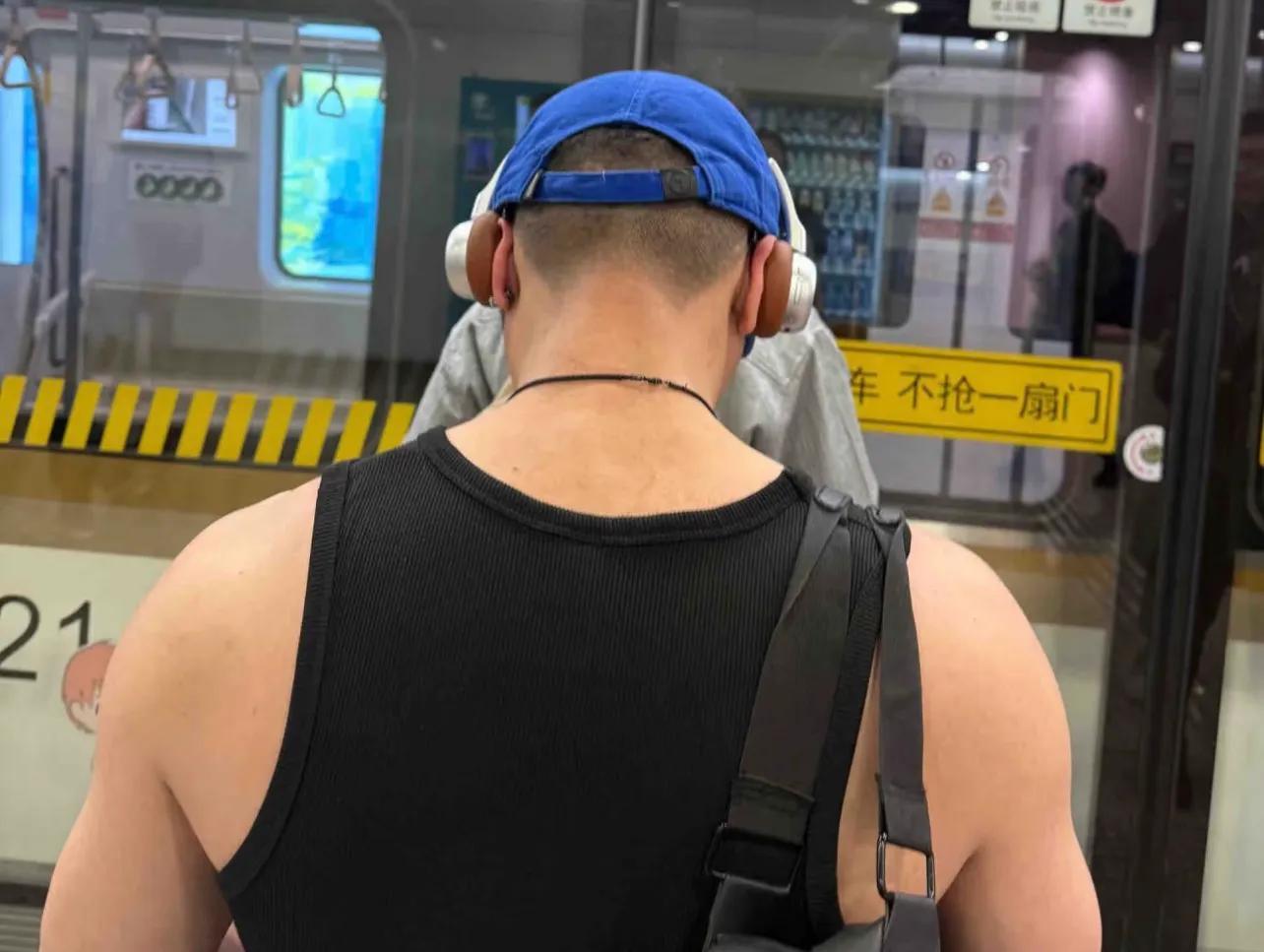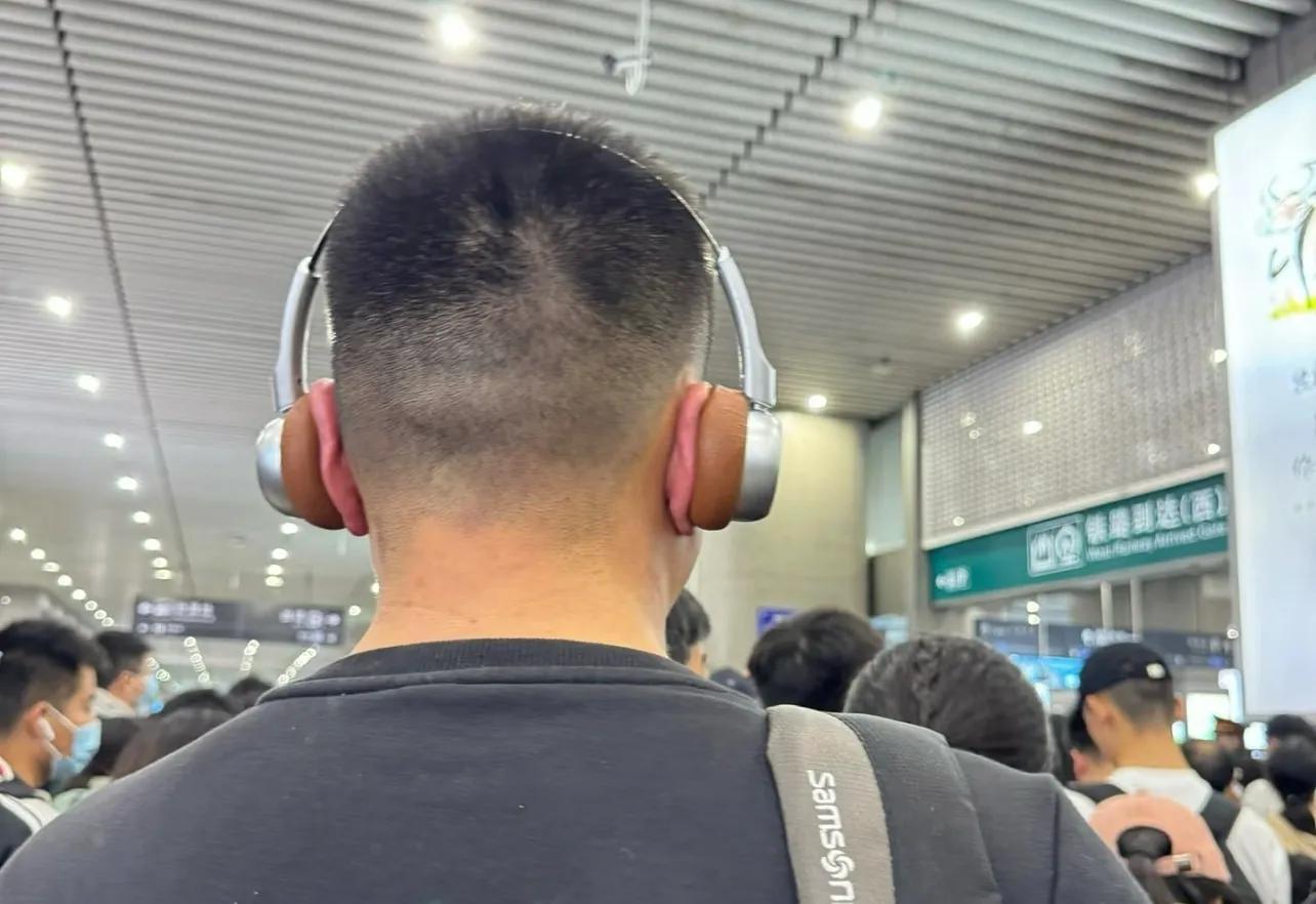 這就引發了一個嚴肅討論:到底是耳機太小,還是耳朵太大?被夾得這麼粉紅,任誰看都以爲是大哥怕漏音,用口香糖粘了一圈,一時間竟認不清哪個是耳朵。