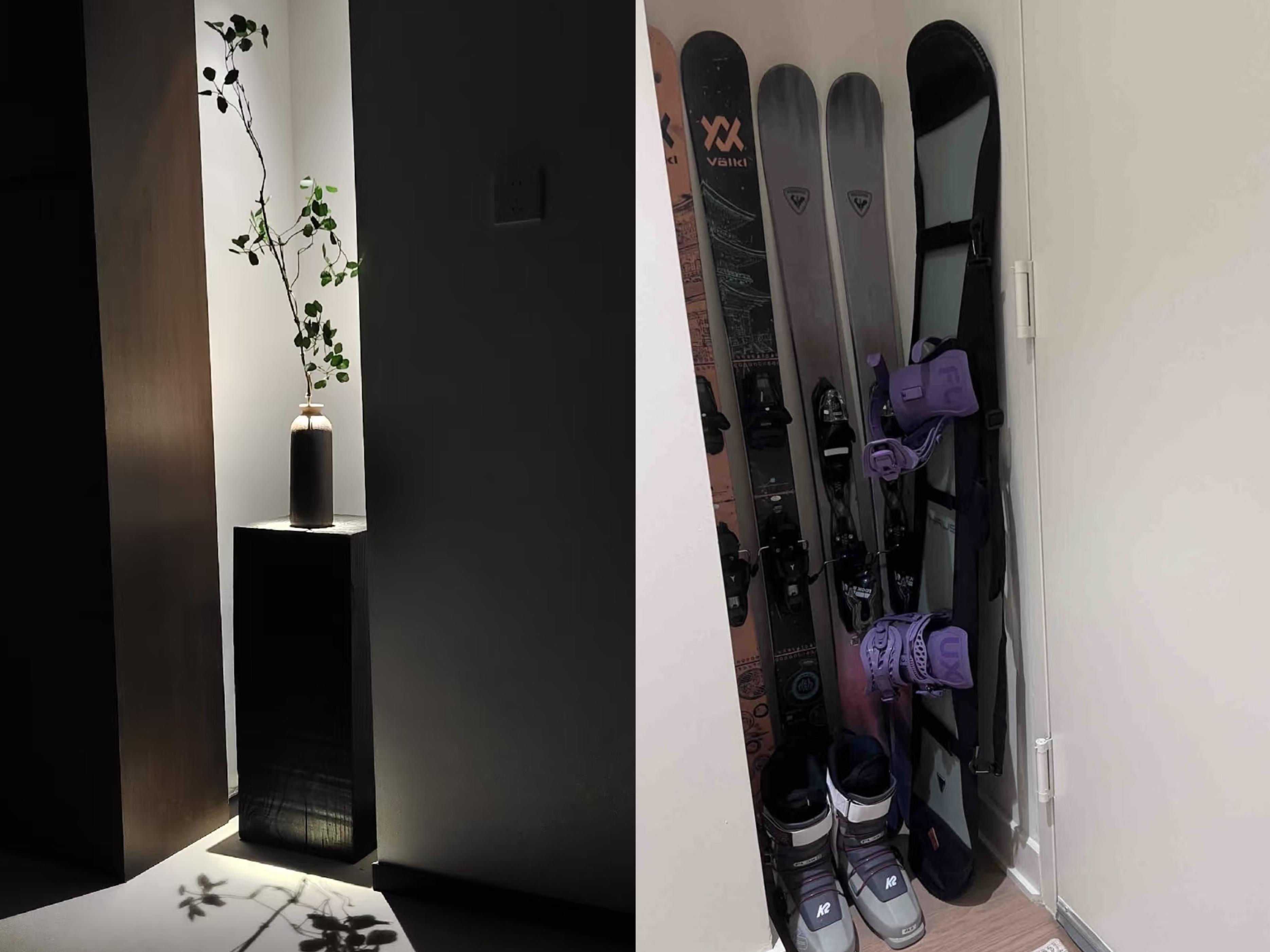 麻雀雖小,真要利用,也能用起來,收納打掃工具、運動用具、瑜伽墊;或者放個置物架+綠植;還能變身次淨衣區,架一根伸縮杆就搞定。