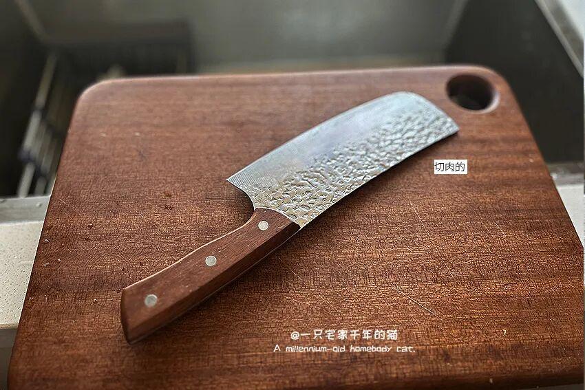 刀的重量很輕,但是很鋒利,切菜切肉都不費勁,用起來也是蠻順手的。