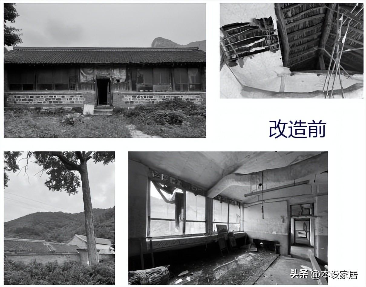 改造前,房屋破敗不堪,門窗破損,雜草叢生。