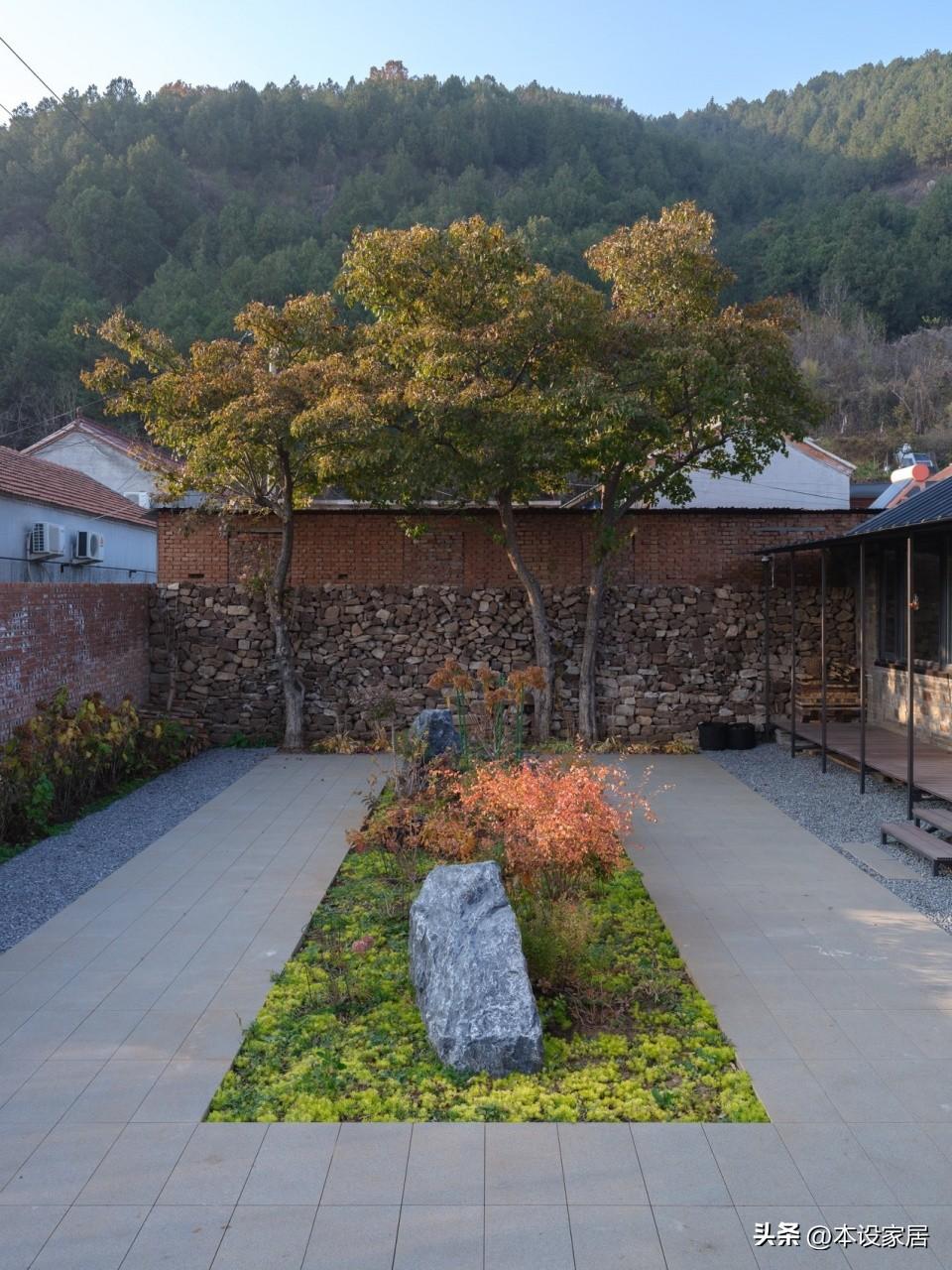 這塊宅基地面積390㎡,除了將原有房屋修繕後作爲客廳和臥室外,還增加餐廚單體和庭院景觀,並重新修建紅磚院牆和改變正門入口。