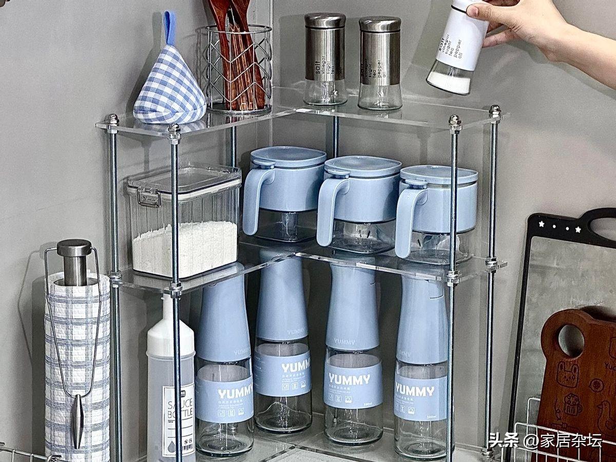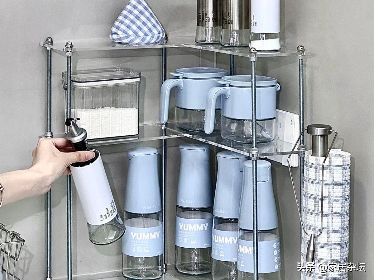 有了轉角調料架,你會發現檯面立馬清爽了,做飯心情都變好了。而且瓶子不擠在一起,標籤朝外,用起來也好用。