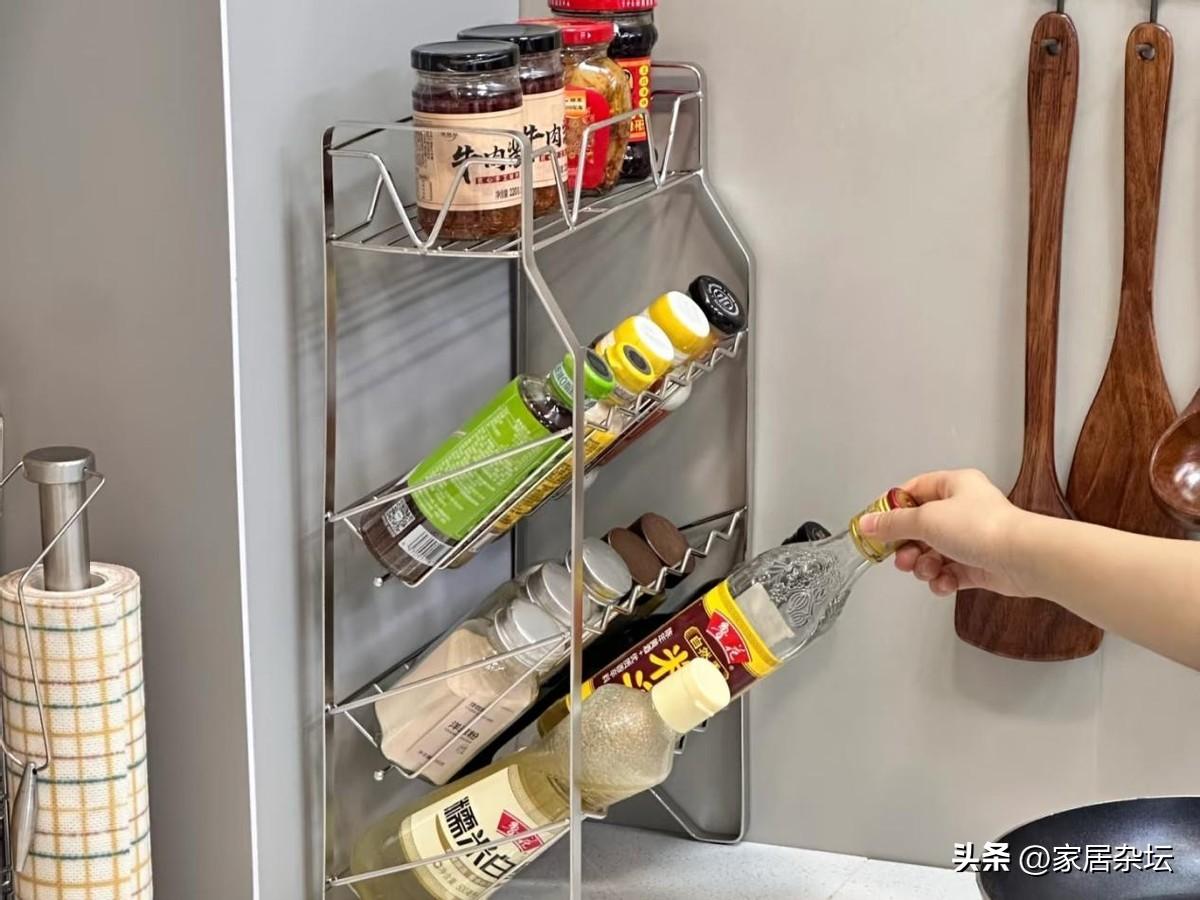 很多家庭的廚房檯面之所以變得很亂,大部分原因都是啊調料瓶。像家裏有油鹽醬醋,各種調料,大大小小好多瓶,擺在檯面上非常亂,炒菜時還手忙腳亂,容易碰到。