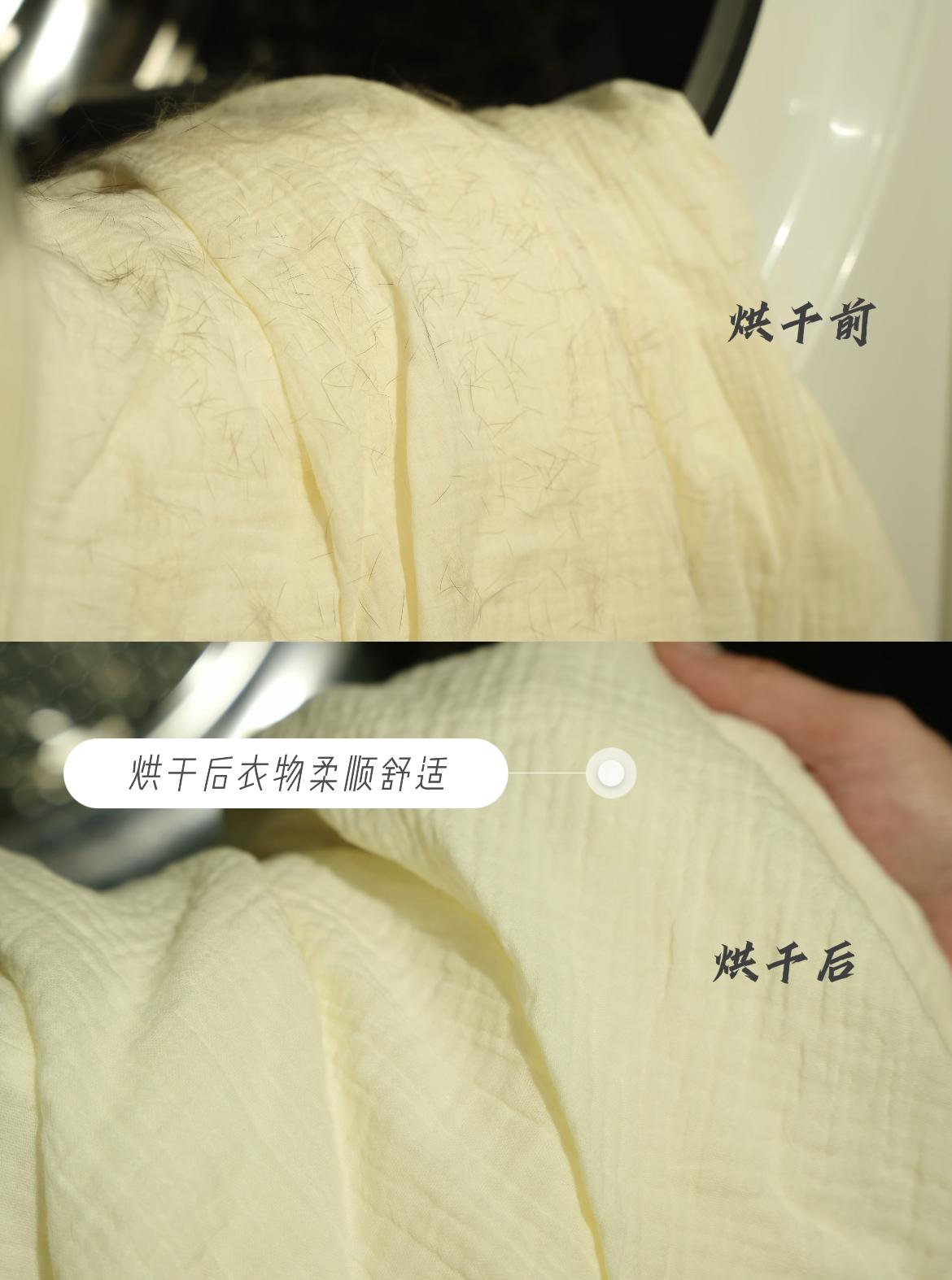 羽絨服烘後依舊蓬鬆不結塊,羊毛、真絲等柔軟面料也能放心烘乾,再也不怕縮水變形,連襯衫烘完都平整得省去熨燙步驟。