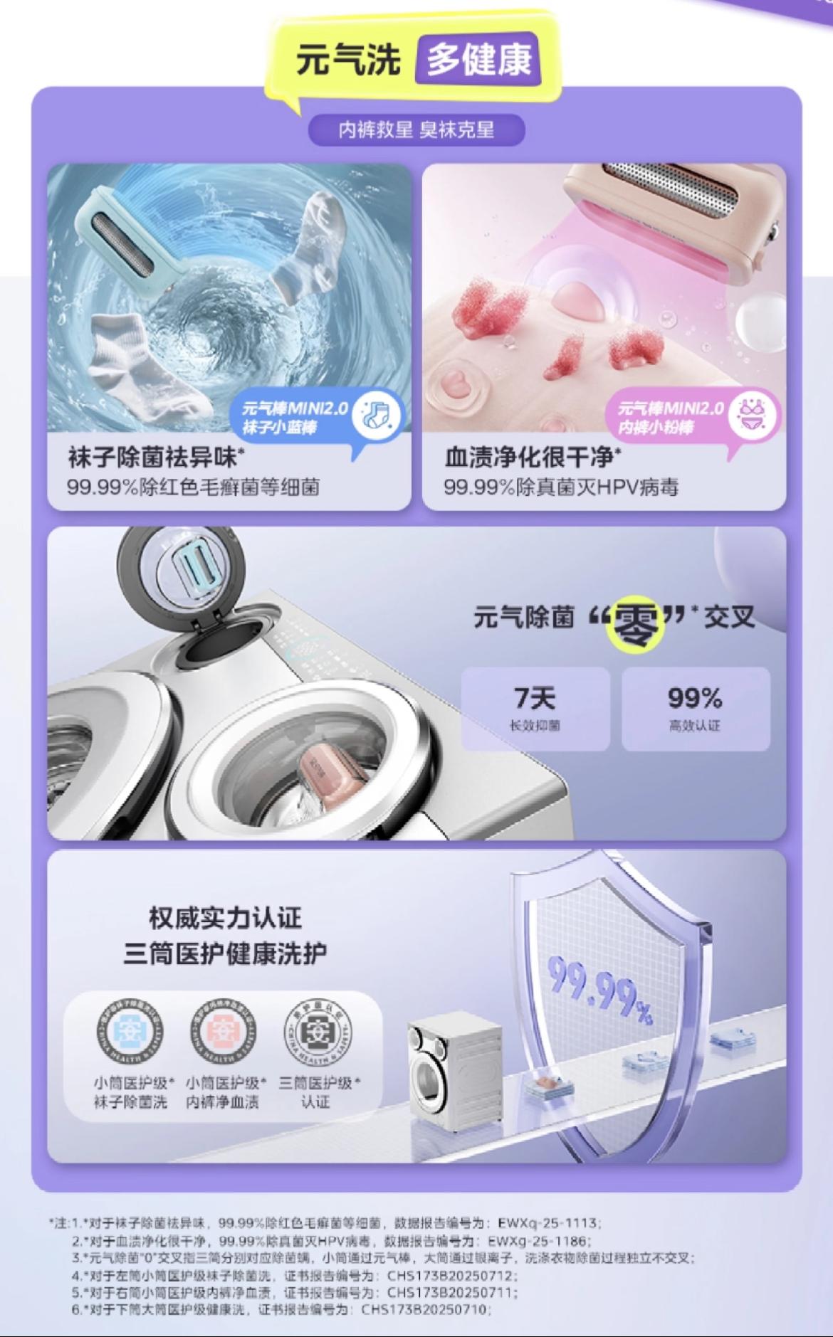 小藍棒能形成陽離子抑菌膜,對紅色毛癬菌去除率達99%,還能實現7天長效抑菌。每一次洗滌,都是對健康的深度守護,尤其適合有老人、小孩或敏感肌的家庭,讓貼身衣物潔淨無隱患,貼膚穿着更安心。