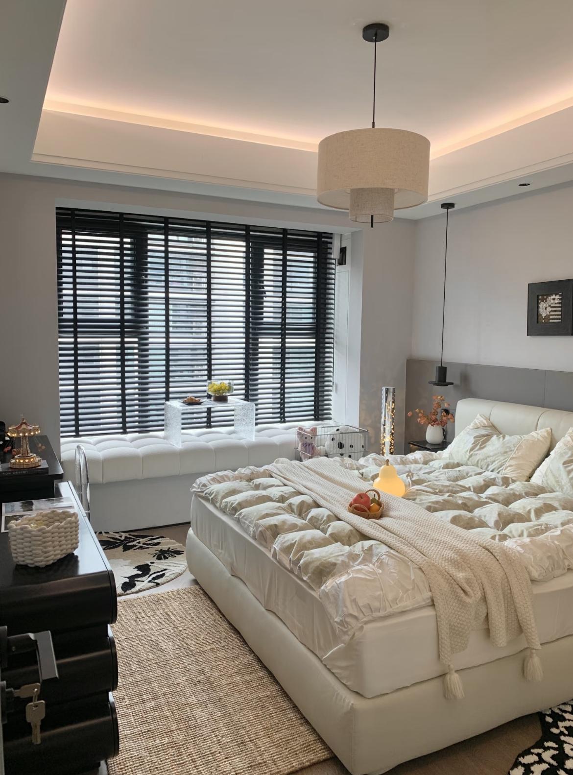 這個空間是由輕法式+現代極簡融合的臥室,在舒適感、氛圍感與實用性上達到了極佳平衡,非常適合追求鬆弛感睡眠的家庭。