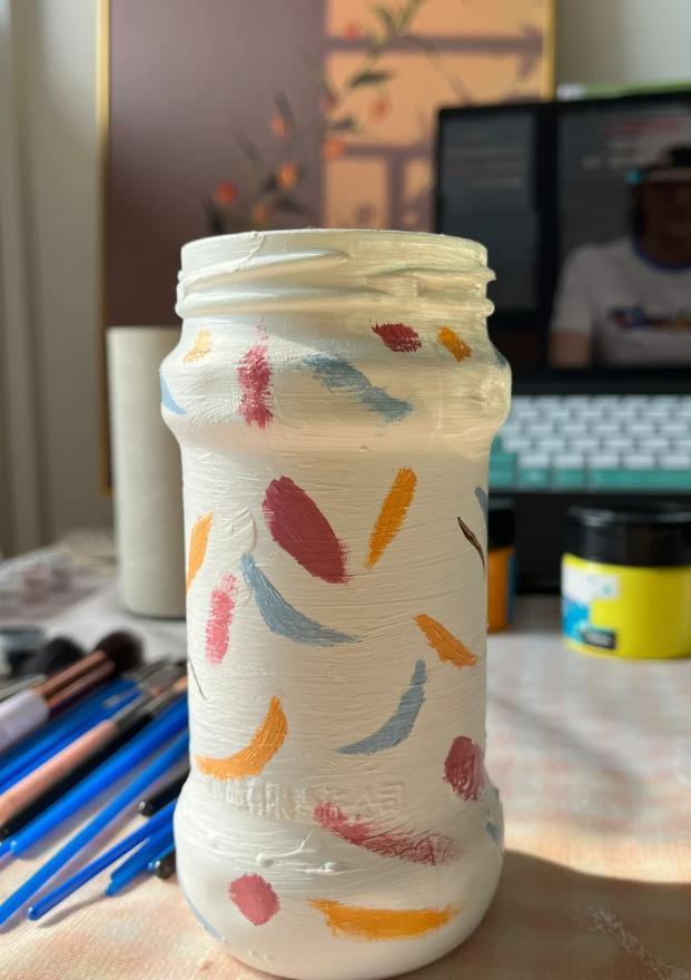 上海一博主,直接把它變成了“藝術瓶”~拿來插花、當筆筒、用來收納化妝刷……