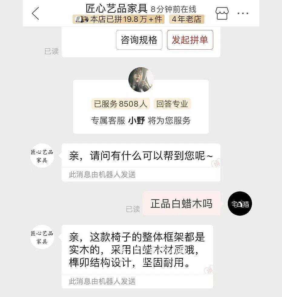 事情是這樣的,家裏添置椅子我一般都是買白蠟木。找了個商家,無論是宣傳還是諮詢,都明確回覆是白蠟木材質。