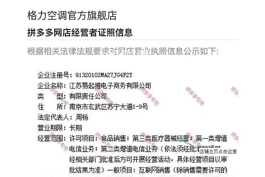 ▲格力旗艦店的營業資質