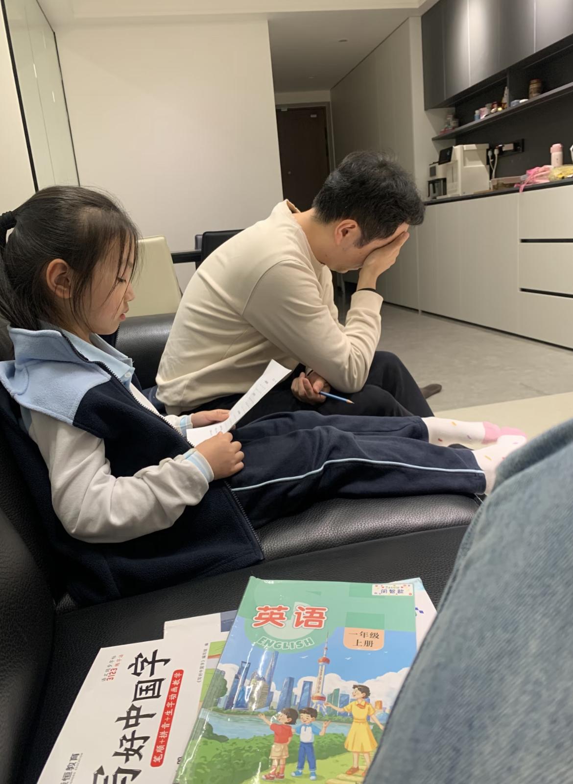 更無奈的是,明明規定一二年級不留書面家庭作業,可實際情況是,語文生字抄寫、拼音拼讀、數學口算、同步練習冊,一樣都少不了,再加上預習、複習、閱讀打卡、手工實踐,所有任務都需要家長全程陪同、監督輔導。