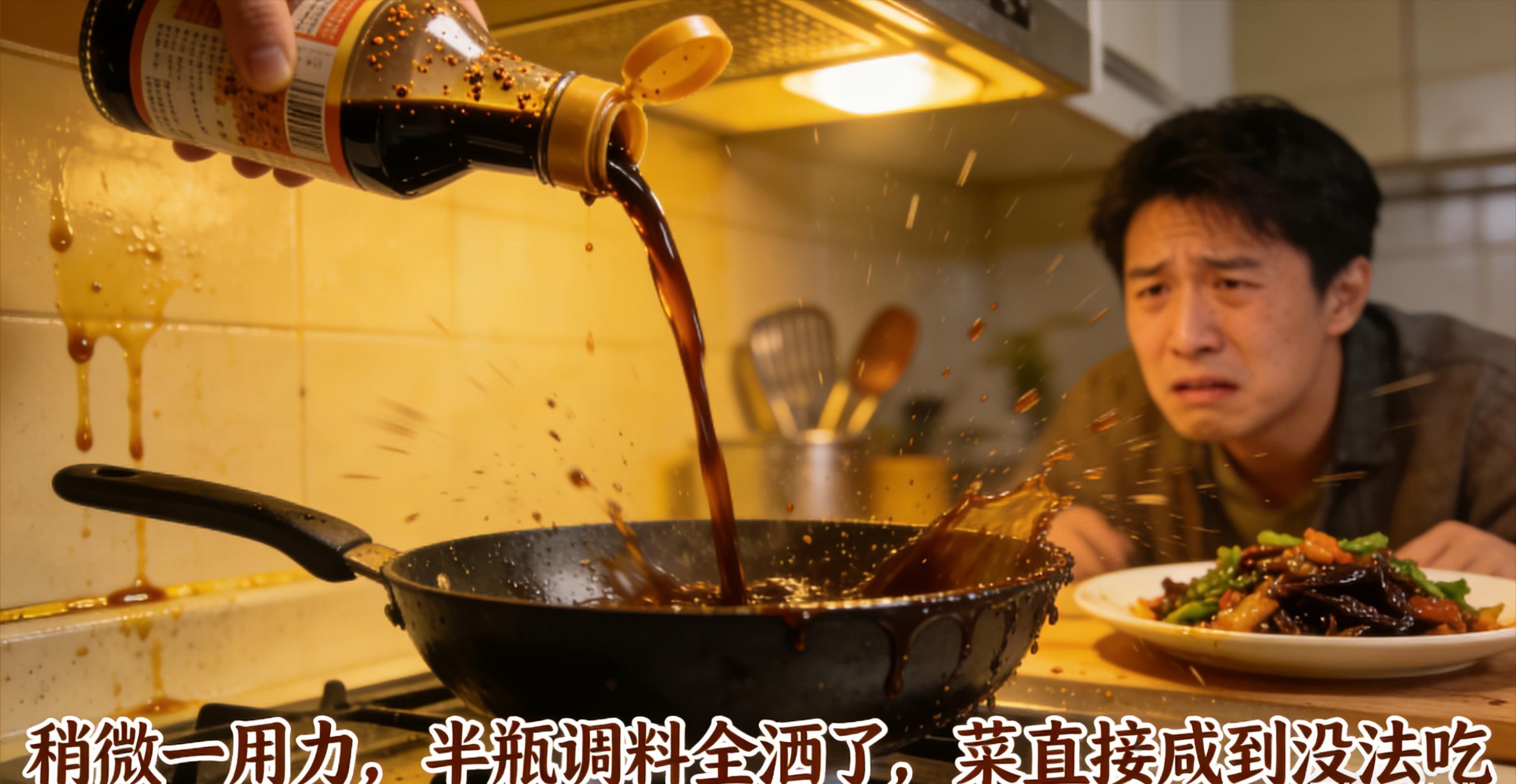 稍微用點力,嘩的一下就灑大半勺,菜直接鹹到沒法喫,竈臺、瓶身、手上全是黏糊糊的調料,擦半天都擦不乾淨,黏糊糊的沾灰又難受。