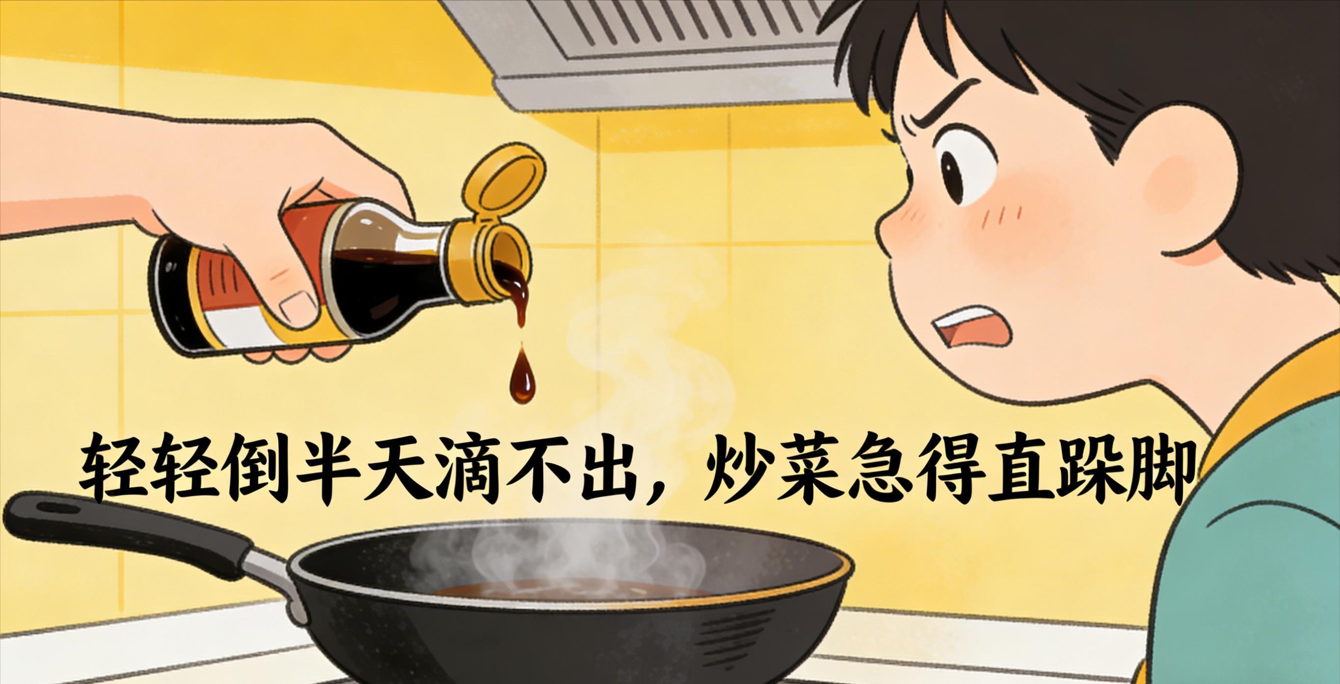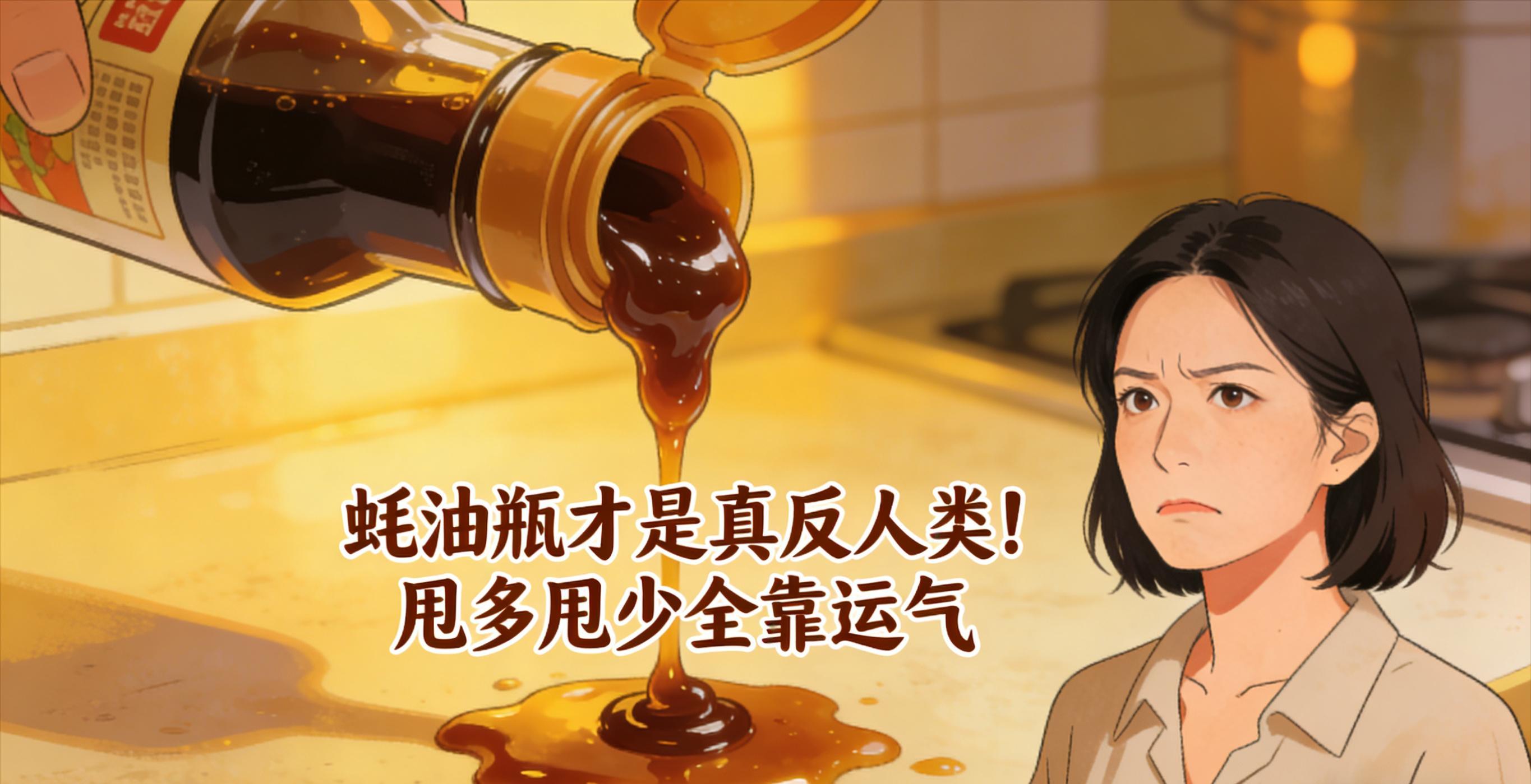 最坑的是蠔油瓶,寬口深瓶的設計反人類到極致,每次用都得攥着瓶身使勁甩,力氣小了倒不出,力氣大了直接半瓶蠔油甩進鍋裏,瓶口還掛着一大坨粘稠的蠔油,放回去就順着瓶身流到桌臺上,幹了之後硬邦邦的擦都擦不掉,明明做成擠壓式瓶口幾塊錢就能解決的事,偏偏要搞這種折磨人的設計,做飯的人哪個沒被它氣過!