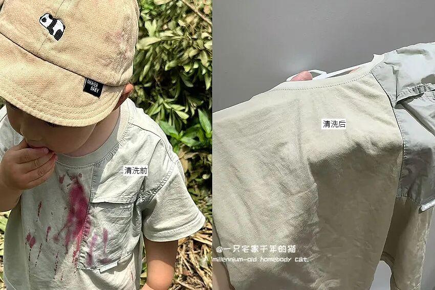 先塗酒精,再抹洗潔精,靜置一會兒,刷一刷,用熱水浸泡後再機洗,就算是頑固老油漬這樣洗兩遍,也都能幹淨。