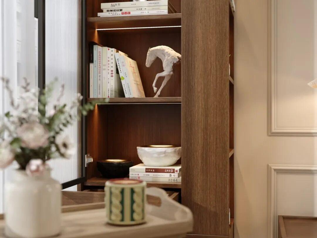 側邊櫃的櫃門建議用無拉手設計,更簡潔利落。施工前還一定要確認兩側牆體是否爲承重牆,承重牆是千萬不能夠開洞的。