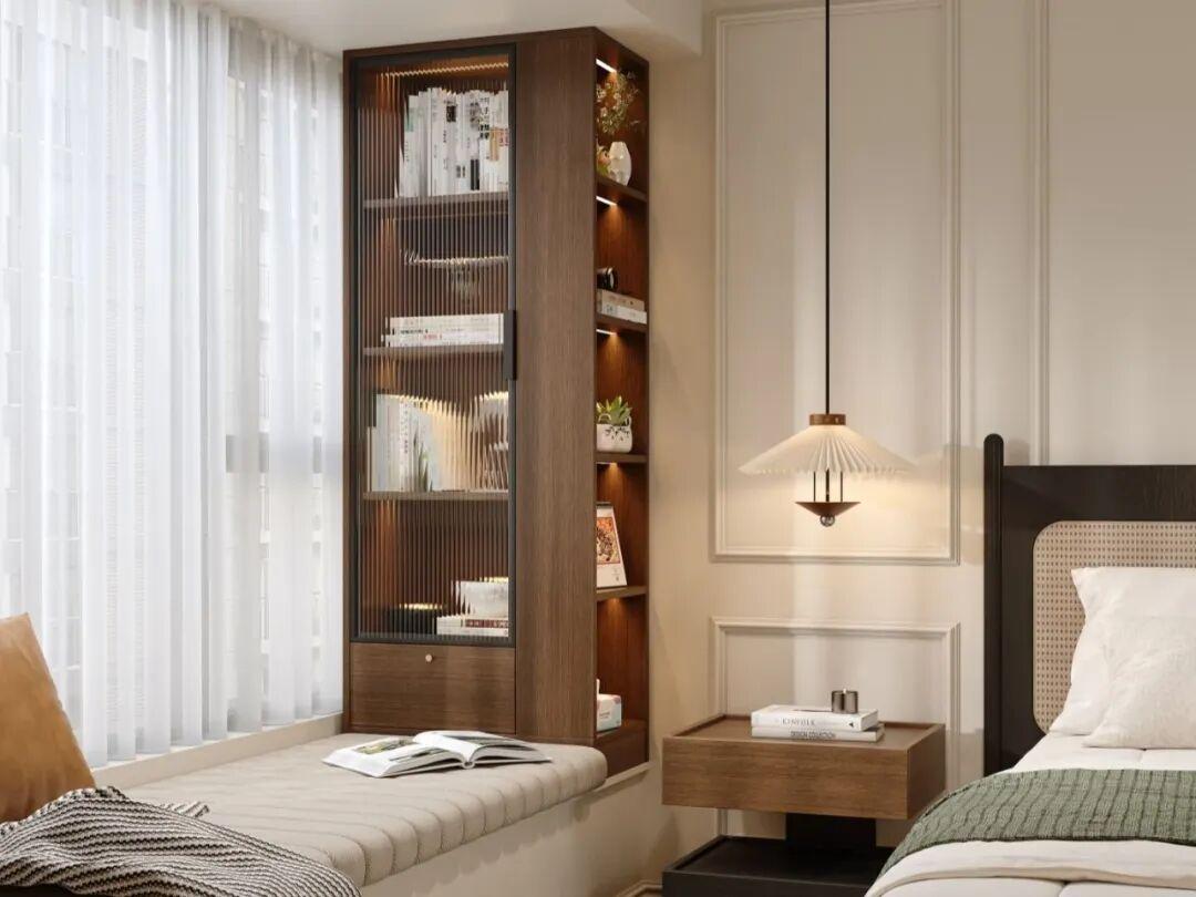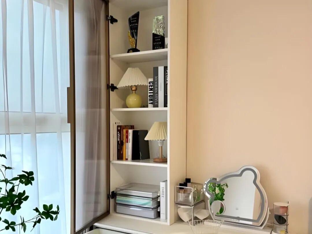 飄窗側邊櫃的深度建議控制在30~40釐米。太深了會顯得很壓抑;太淺了不好用。