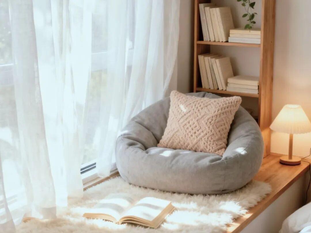 飄窗軟墊的材質是很關鍵的,太薄坐着不舒服,太厚容易塌陷,5~10釐米比較適中。
