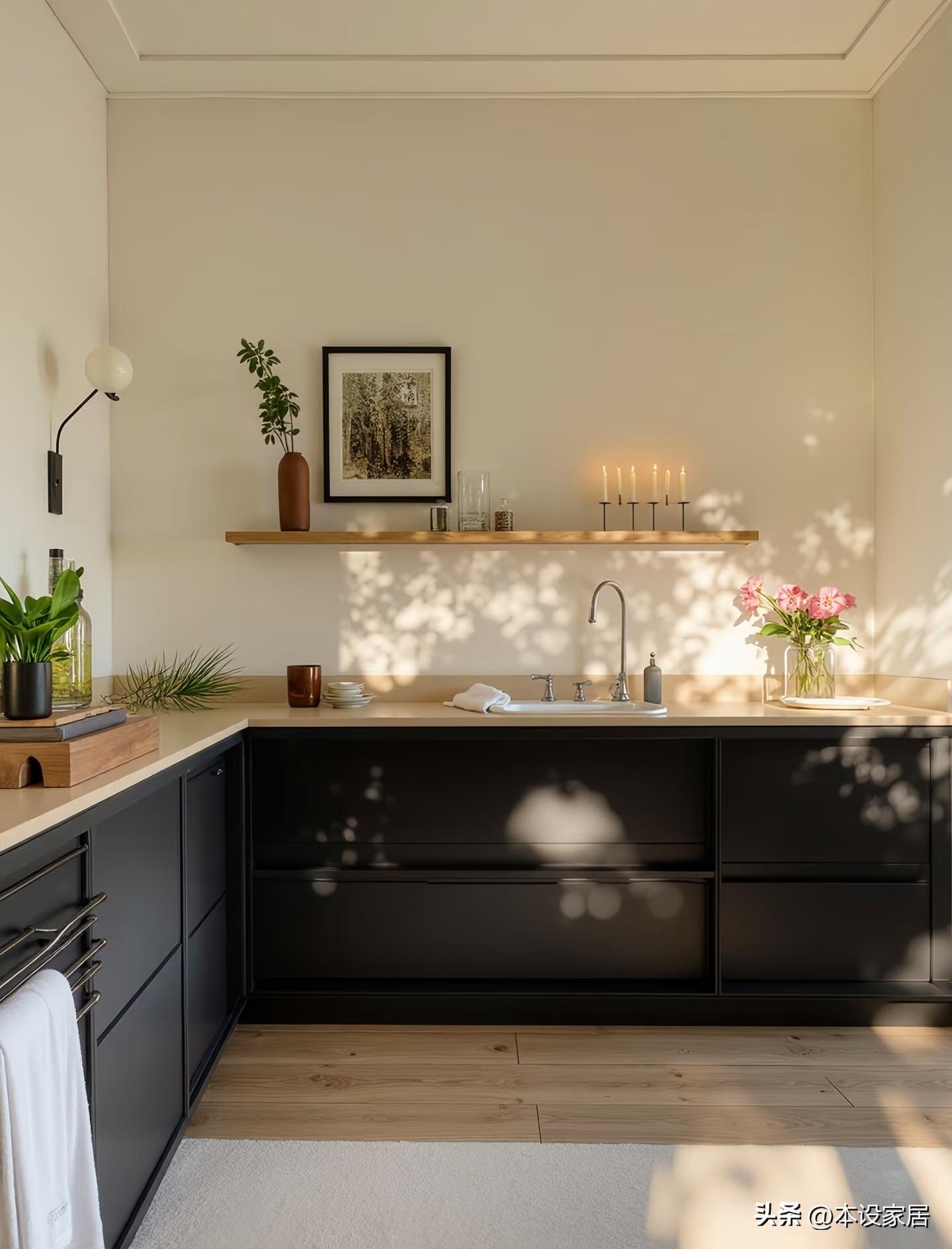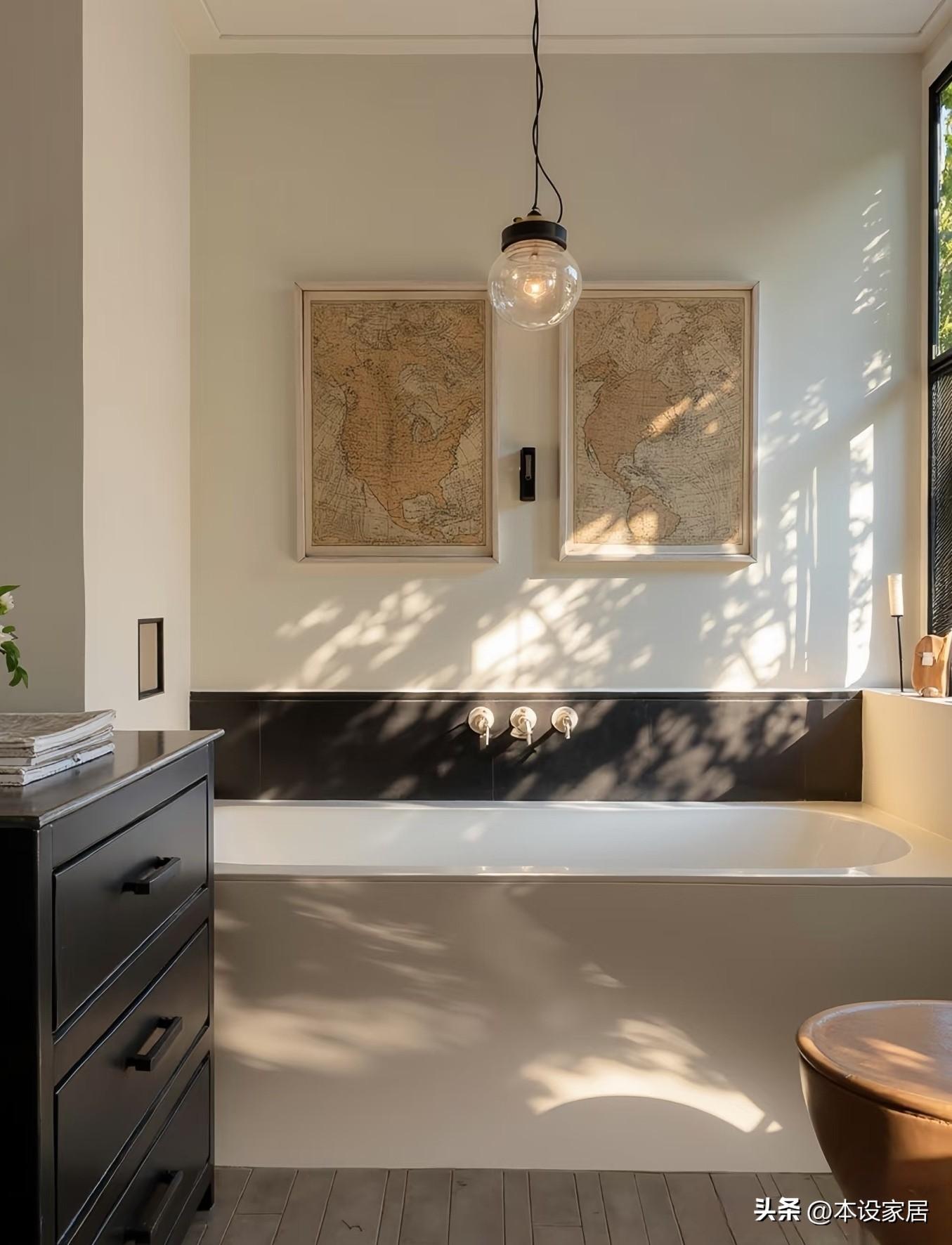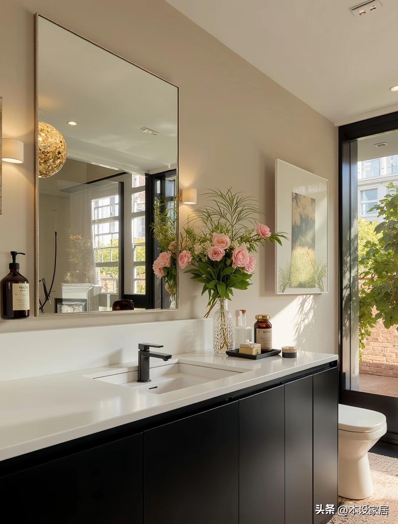 主衛和次衛面積都達到25㎡,在乳白色色調中融入黑色,營造出一種復古的浪漫情調,不經意間湧現出生活的魅力。