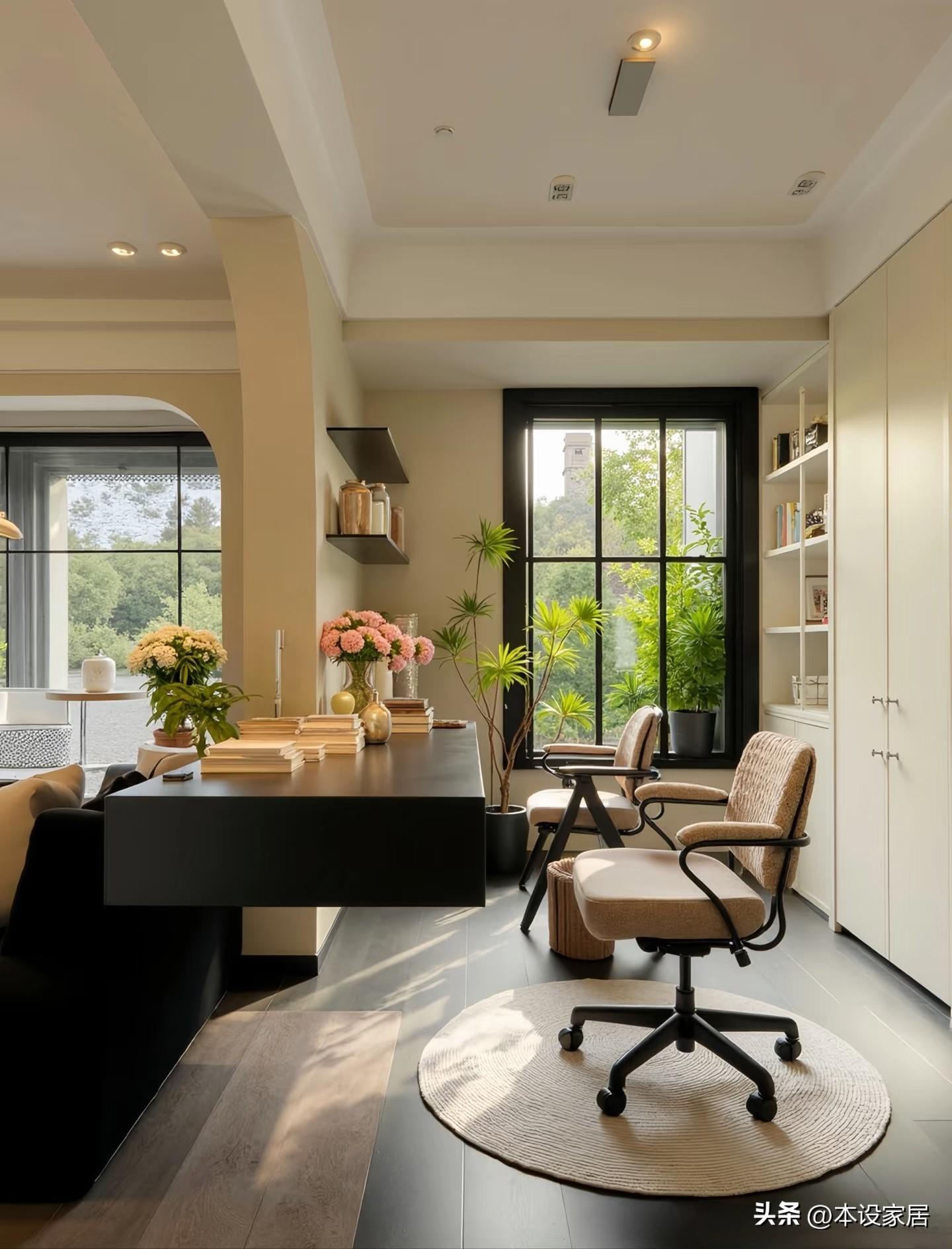 改造時,拆除了書房部分隔牆,半開放式的佈局,採光好,視線也更加通透,可以與家人共享閱讀場域。