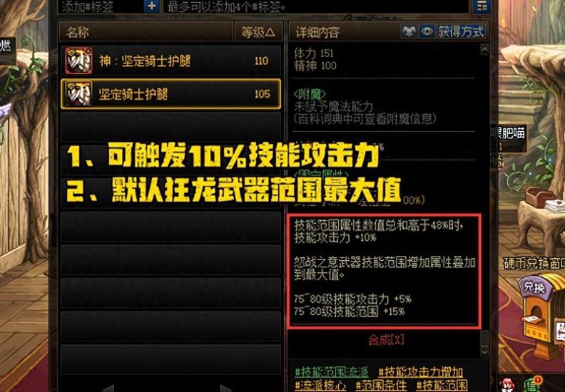 第二,“騎士護腿”可直接默認拉滿“狂龍武器”的技能範圍最大值!