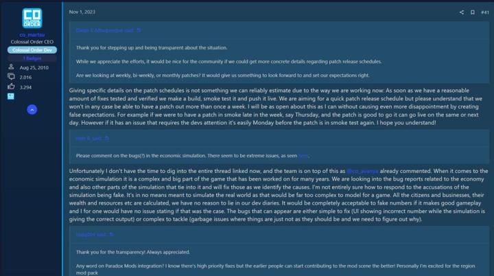 幸好開發團隊最終還是意識到了問題所在,11月1號,CEO馬力納親自出面撰寫了一篇將近千字的開發者日誌,重新啓動了“每週對話(word of the week)”。這個欄目開始於2016年,《都市:天際線》初代剛上市的時候。那時遊戲也遇到了各種各樣的優化和bug的問題,但是通過CEO直接出面和玩家交流,最終將遊戲打造成了歷史上最成功的的城市模擬經營遊戲。