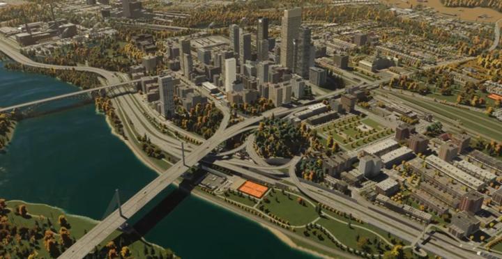 一個最典型的例子就是遊戲中的路網系統。道路是一座城市的生命線,甚至很大程度上決定了城市的景觀面貌。初代《都市:天際線》上市的時候,最受好評的就是優秀的路網工具。而二代遊戲在這個基礎上吸收了很多來自玩家社羣的改進,讓玩家可以不依靠任何額外工具,就能讓高速路、快速路和一般道路有機結合,設計出複雜精美的立交道路網絡。