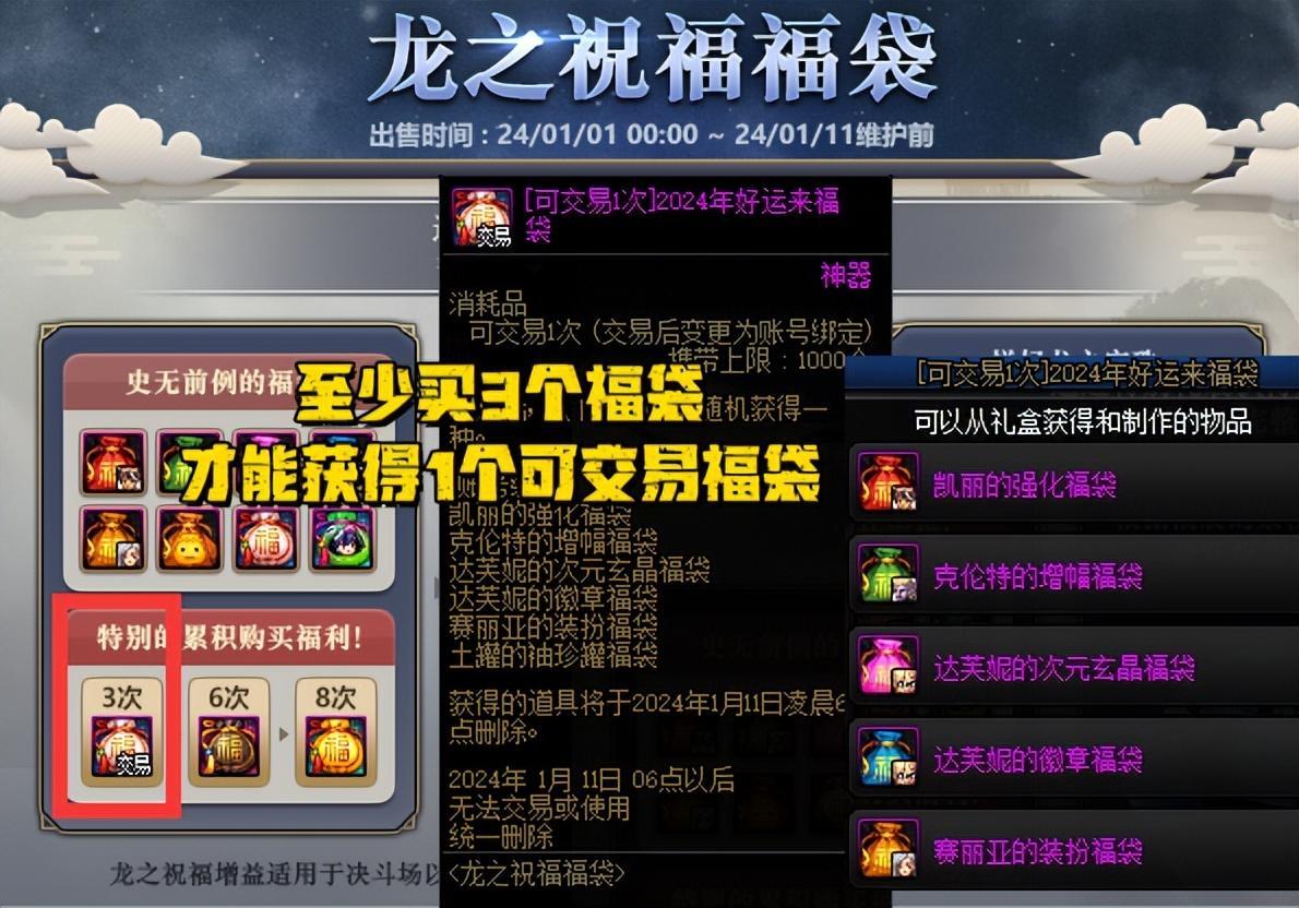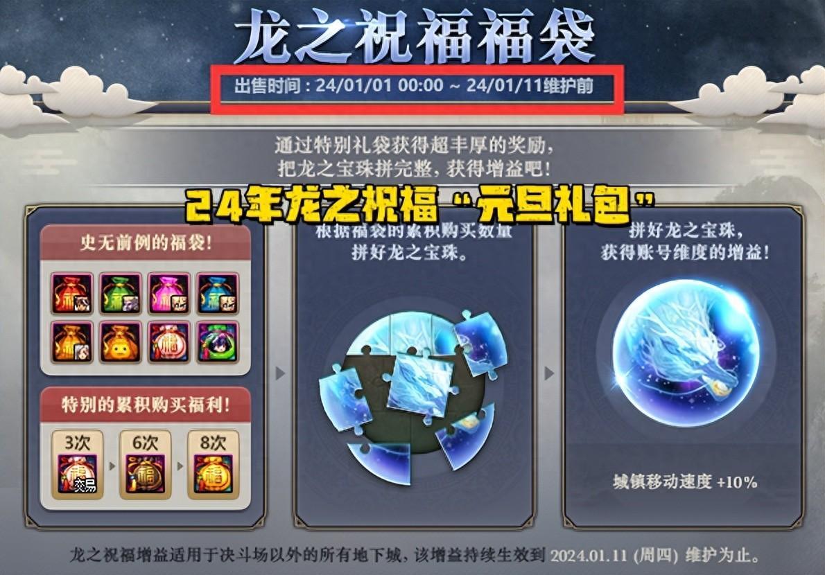 在1.1~1.11活動期間內,商城推出了一個名爲“龍之祝福”福袋禮包,因爲剛好在元旦期間推出,所以又叫“元旦禮包”。