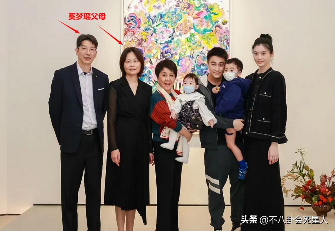 但從奚夢瑤父母每次和四房的合照來看,他們卻似乎都是站在最邊上的位置。比如之前有一次,他們和四太梁安琪,何猷君以及兩個孫子孫女合照,何猷君和梁安琪分別抱着孩子站在C位,奚夢瑤站在何猷君身邊,奚夢瑤父母則站在梁安琪身邊。