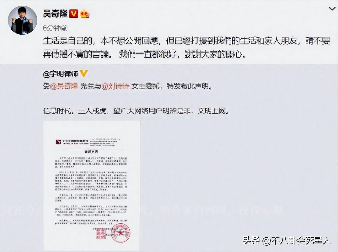 其實,劉詩詩和吳奇隆兩人都非常低調,他們曾經發過一次闢謠聲明,但仍然堵不住悠悠之口,之後兩人便不再爲這些謠言而費心了,覺得過好自己的生活就是了。