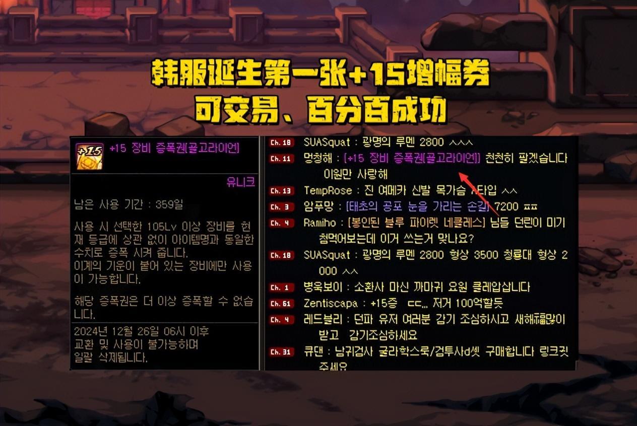要知道韓服普遍增幅等級都比較低,一身紅12都算頂尖大佬了,而這一張“+15增幅券”橫空出世顯然驚呆了衆人,而且最重要的是,它還可以交易!