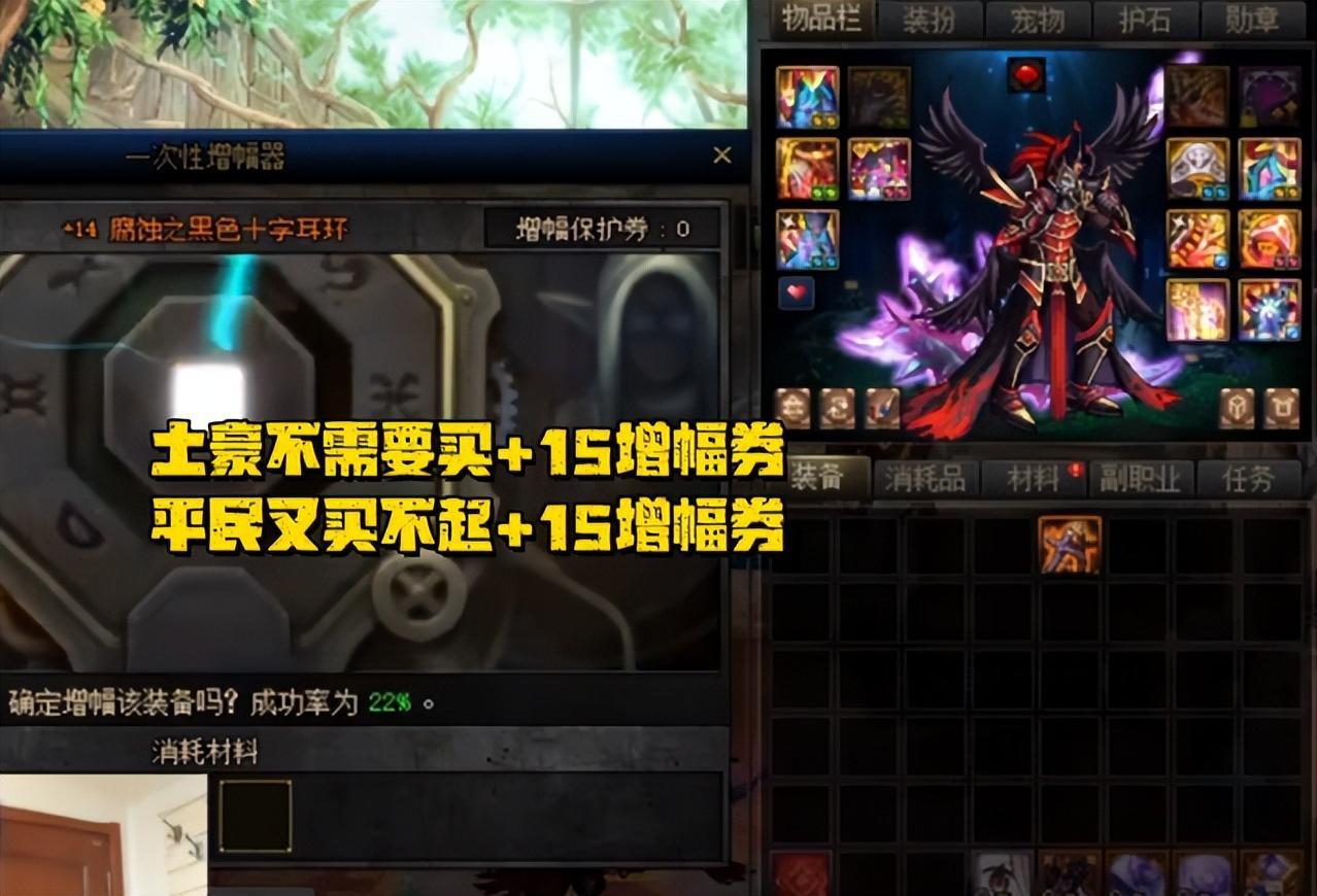舉個簡單例子,有增幅活動的時候,國服包一件紅14大概花費在6000左右,衝一件紅15大概也就需要6~7萬。