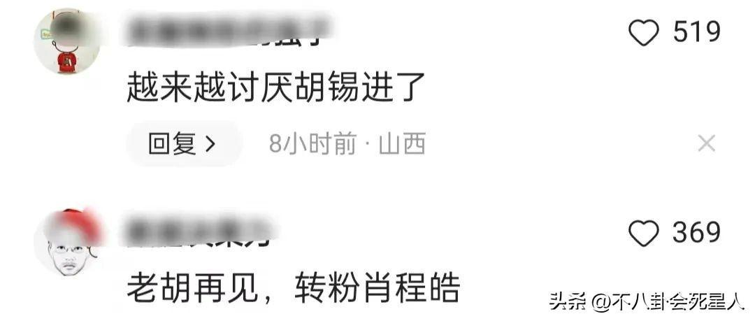 胡錫進發聲後,他的評論區迅速被衝,遭到了許多人的抵制,留言幾乎都是力挺肖程皓,討厭胡錫進的。