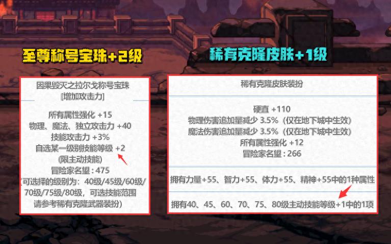 “至尊稱號寶珠”相比於“普通稱號寶珠”,多了2級主動技能,可在40/45/60/70/75/80中任選1個;