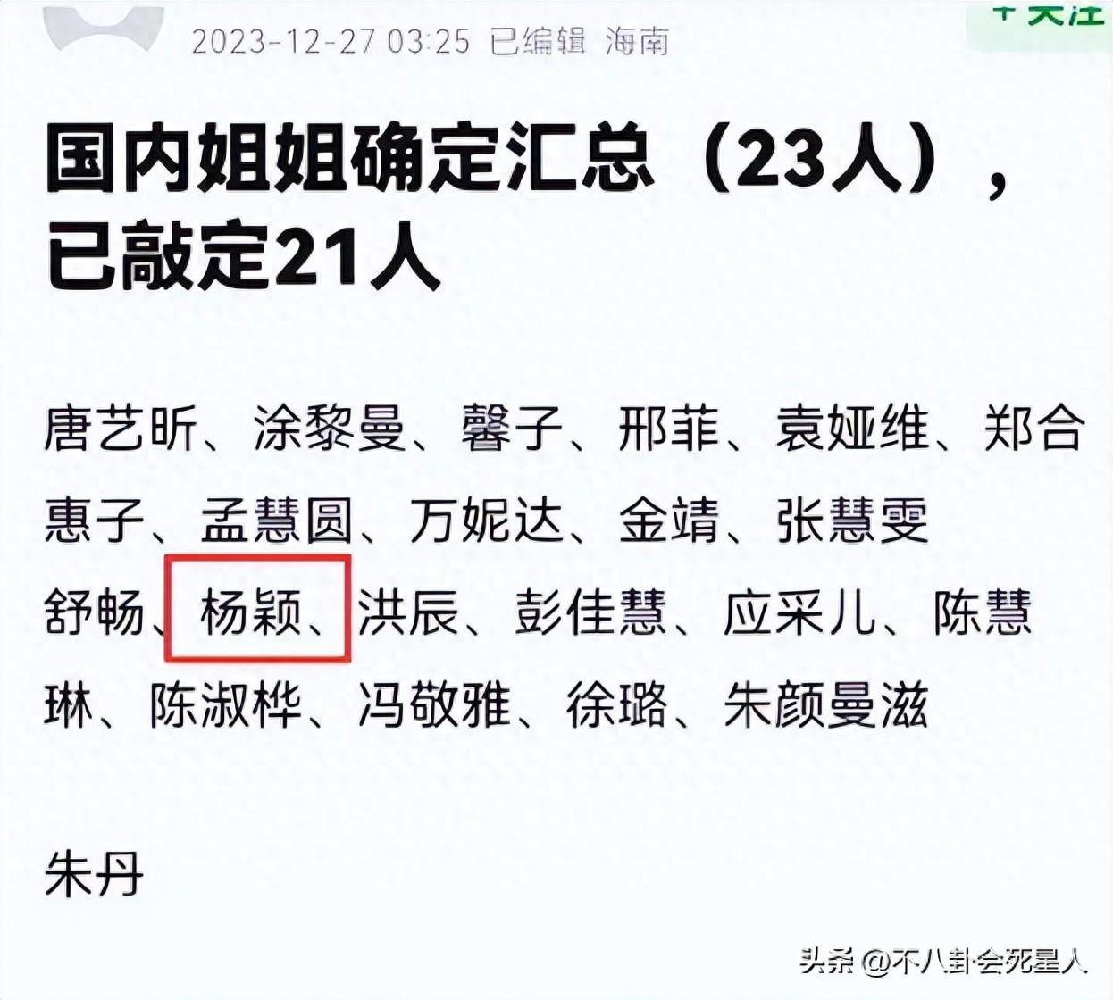 不過這份名單中爭議比較大的,還是楊穎的名字赫然在內,畢竟前段時間網傳她被軟封殺的消息非常熱烈,此次被爆料在節目名單當中,網友們紛紛揣測是否要復出了。