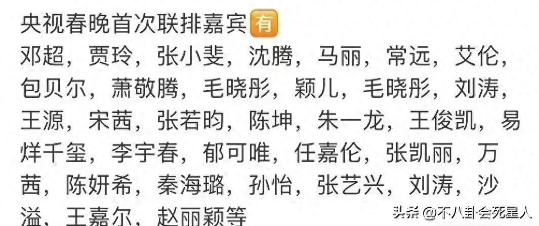 快要過年了,春晚備受關注,近日,網上流傳出一則名單,鄧超、賈玲、張小斐、沈騰、馬麗都在其中,引起了廣大網友激烈的討論。