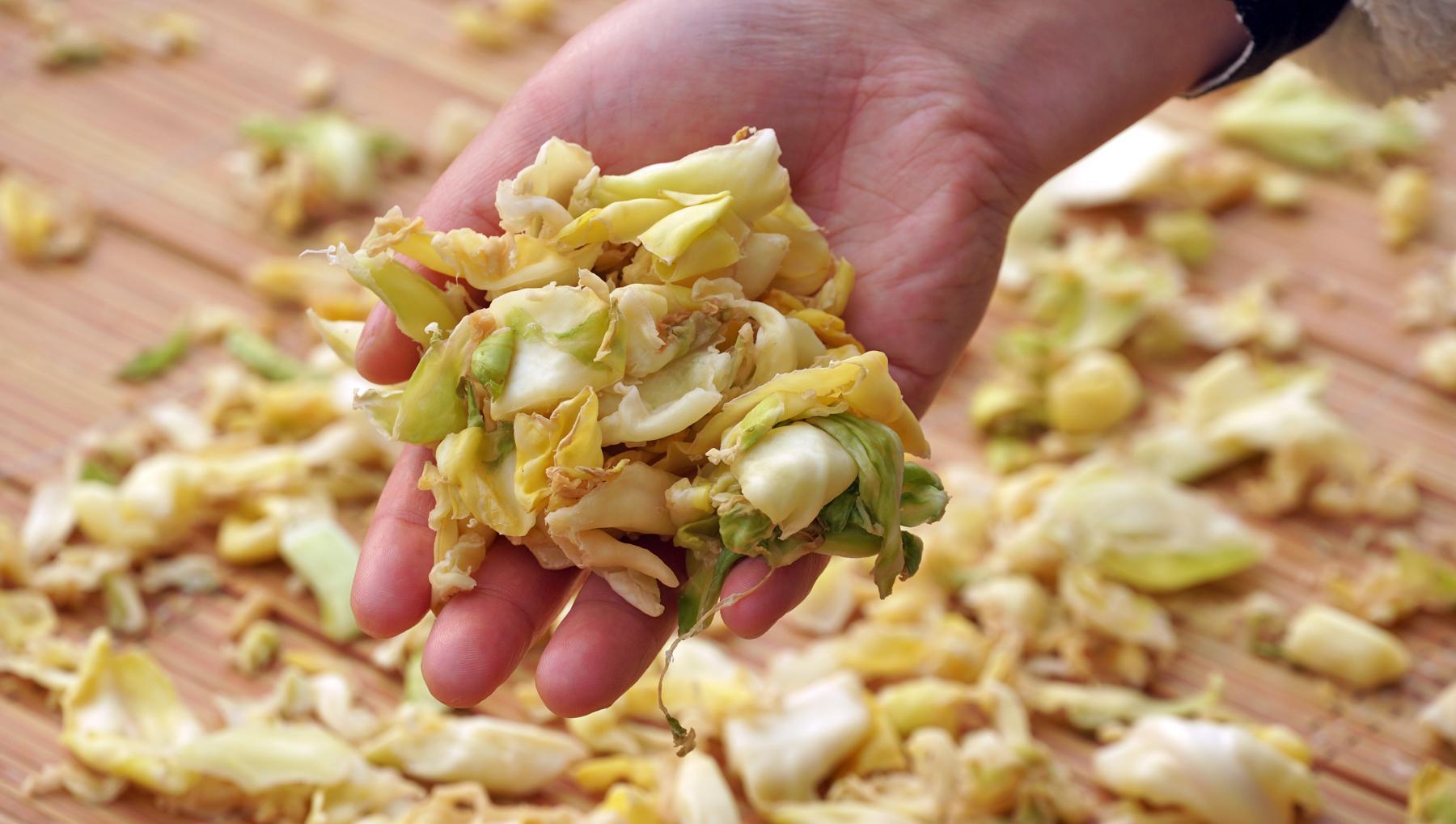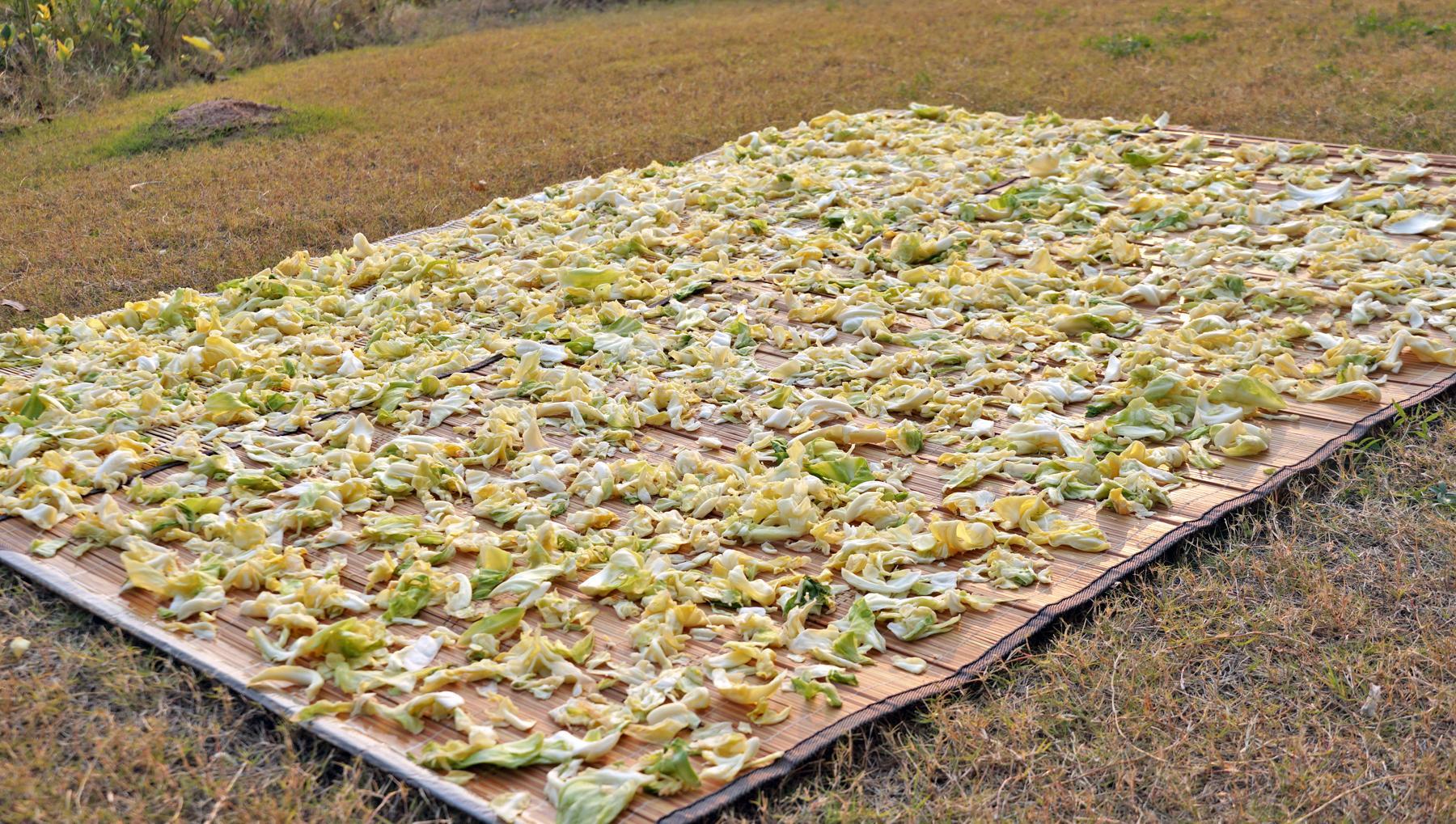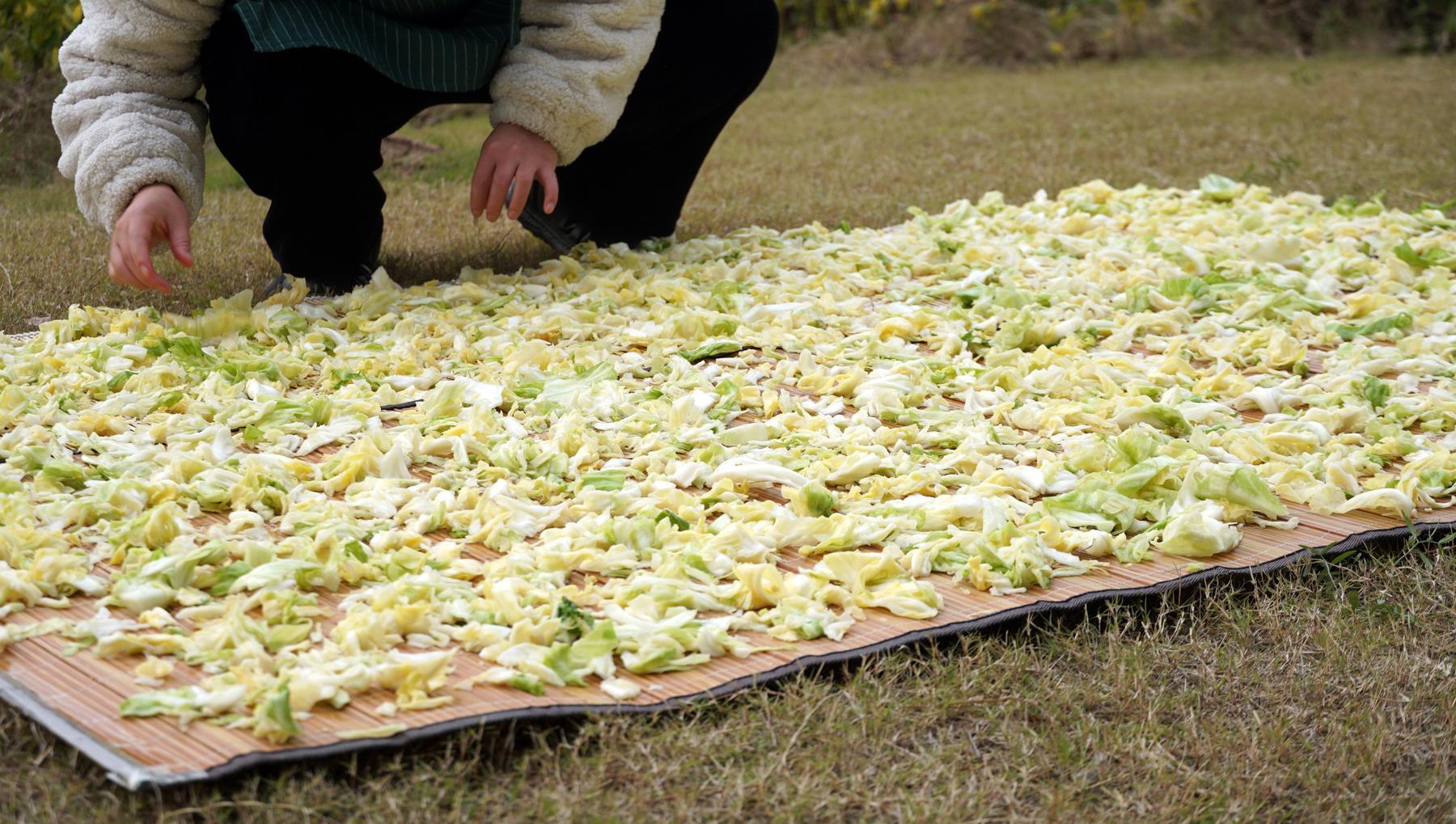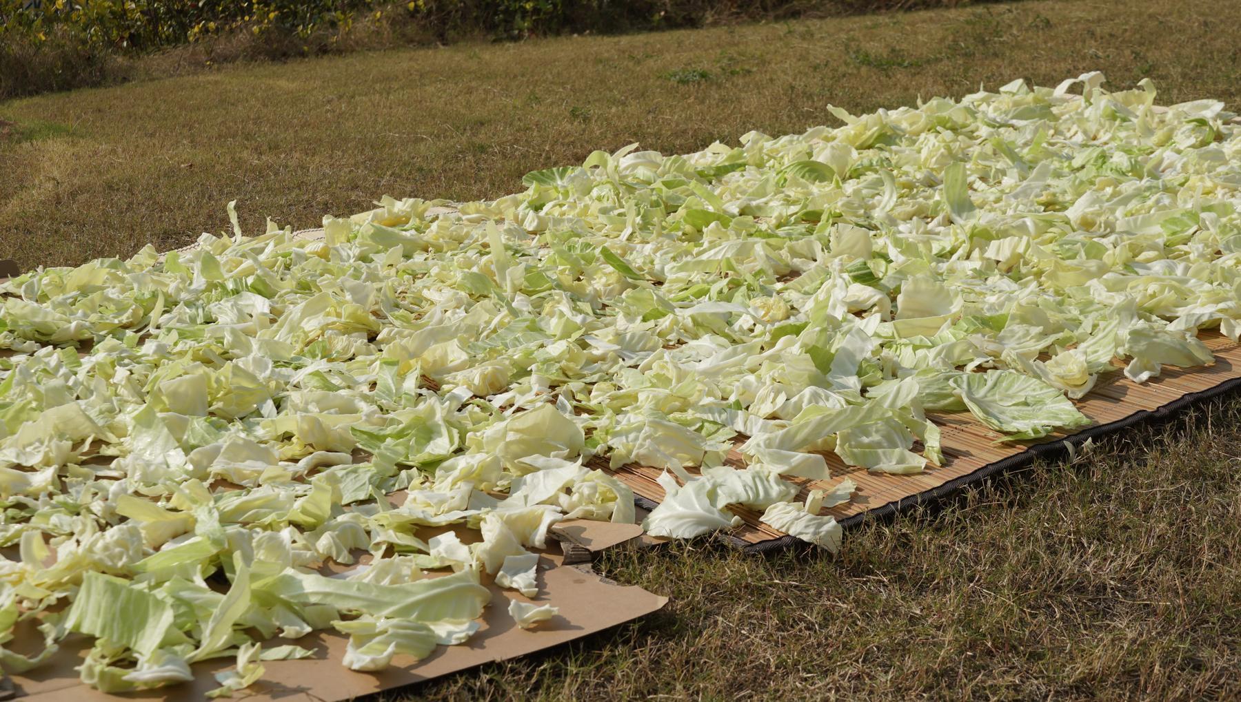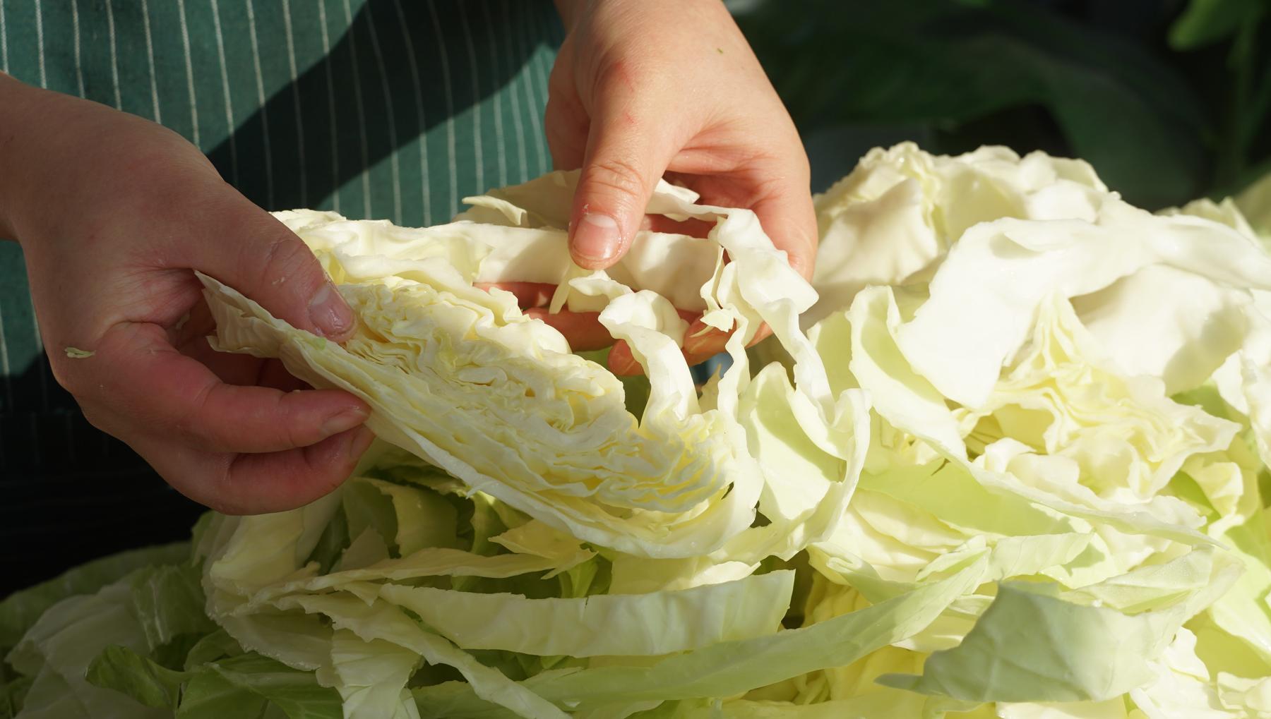 醃過的包菜曬起來更快,而且冬天的風也大,像這樣包菜就是曬好了,乾爽乾爽的。