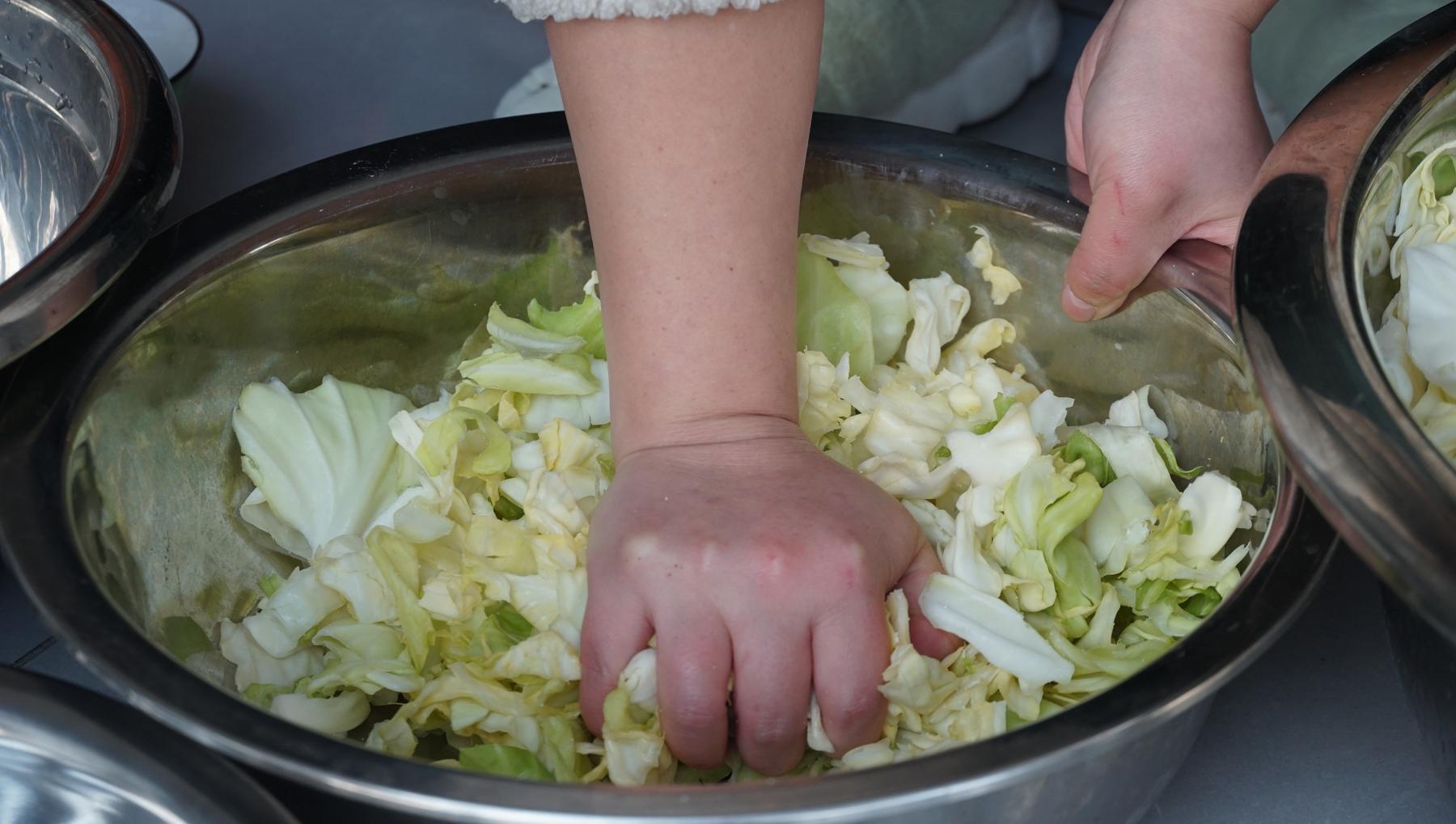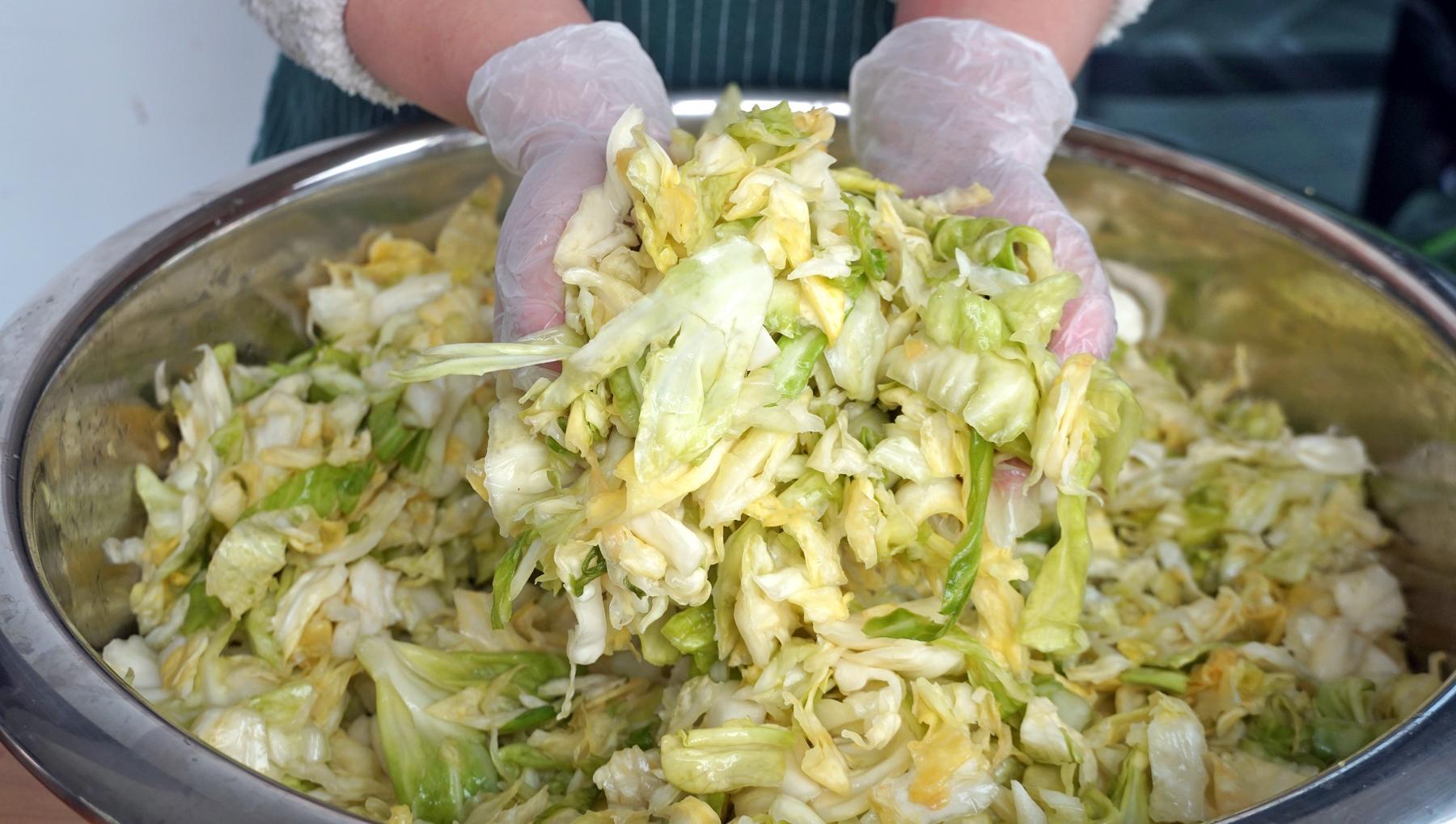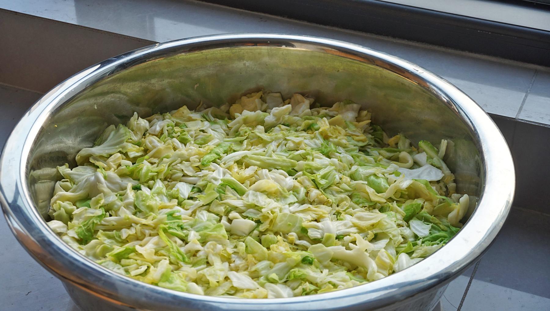 3、後面都是一樣的步驟和操作,直到把包菜全部揉完,這時候包菜的體積又變小了一些。
