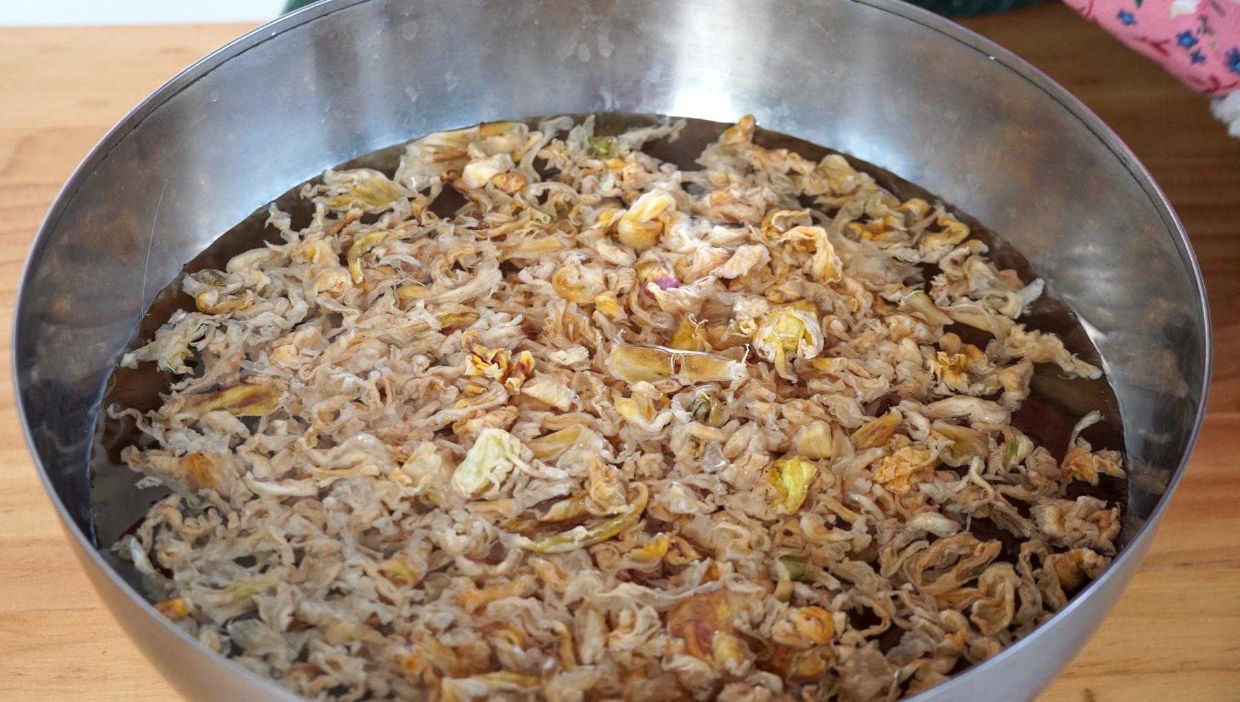 6、喫的時候抓一把用溫水泡發擠幹水分就可以了,