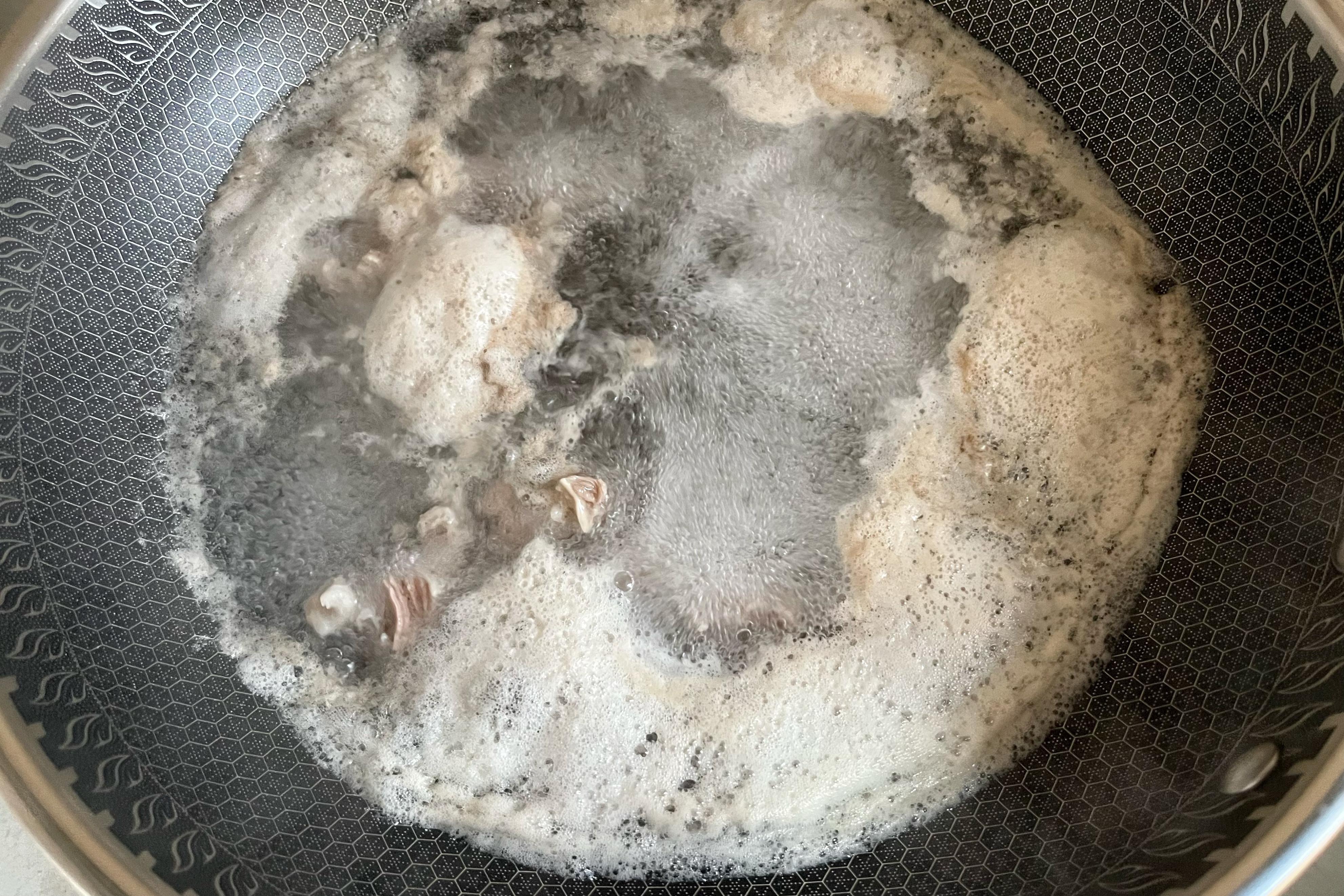 1、排骨斬小塊,洗淨後冷水下鍋,煮出浮沫去腥,然後撈出來備用;