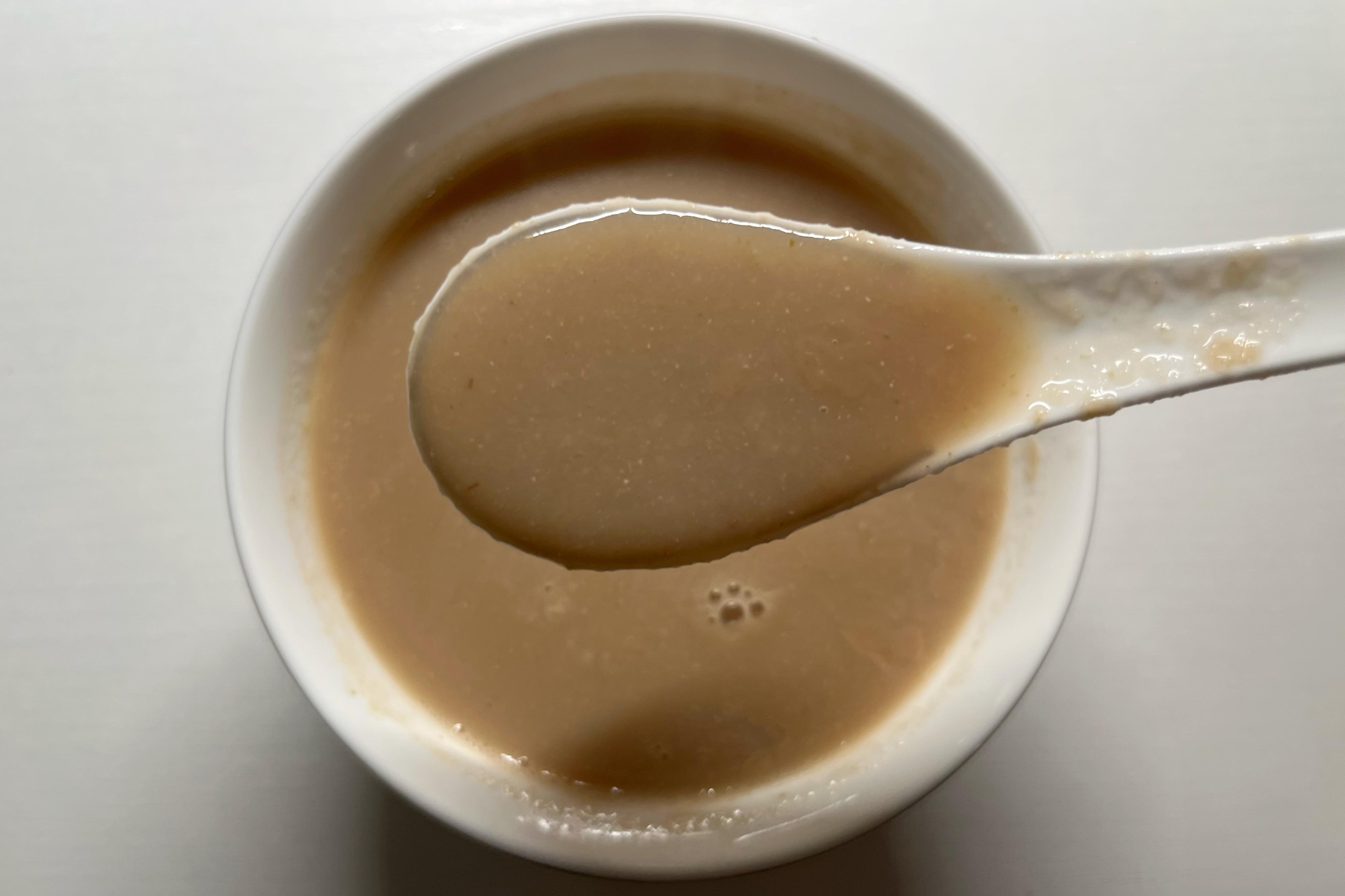 3、啓動機器的“五穀濃漿”功能,將食材榨成漿狀,過篩到碗中就可以飲用了。