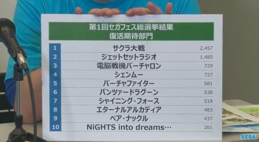 時間到了2016年,在世嘉Fes活動上,官方公佈了玩家希望復活的IP投票。《櫻花大戰》第一,《電腦戰機》、《VR戰士》和《鐵甲飛龍》等作品也榜上有名。於是,一套老IP復活的大計就這麼轟轟烈烈地展開了,但結果卻總是與粉絲的期待有不少差距。