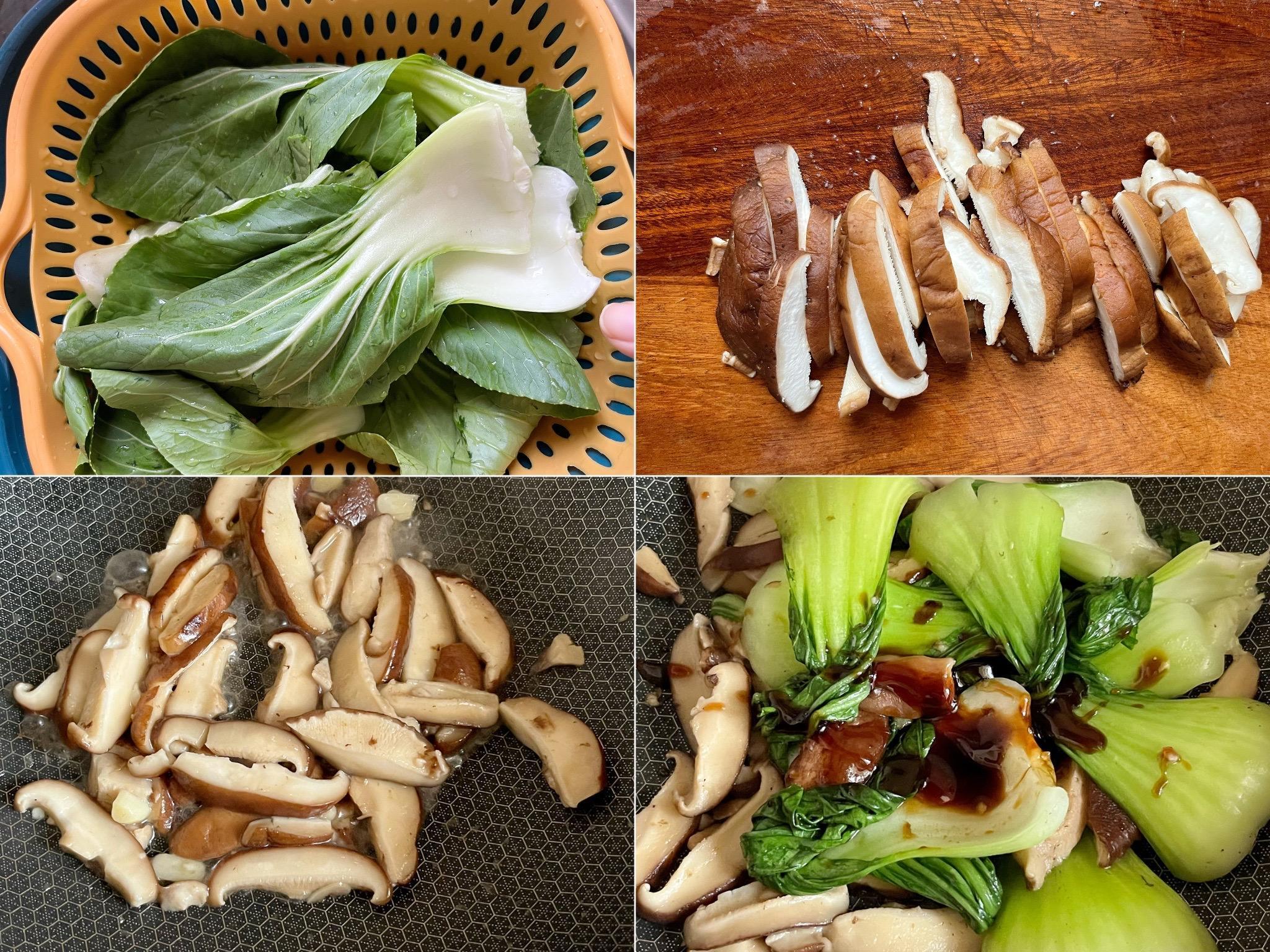 2、鮮香菇3-5朵,切掉菌柄,洗淨後再切成薄片狀;