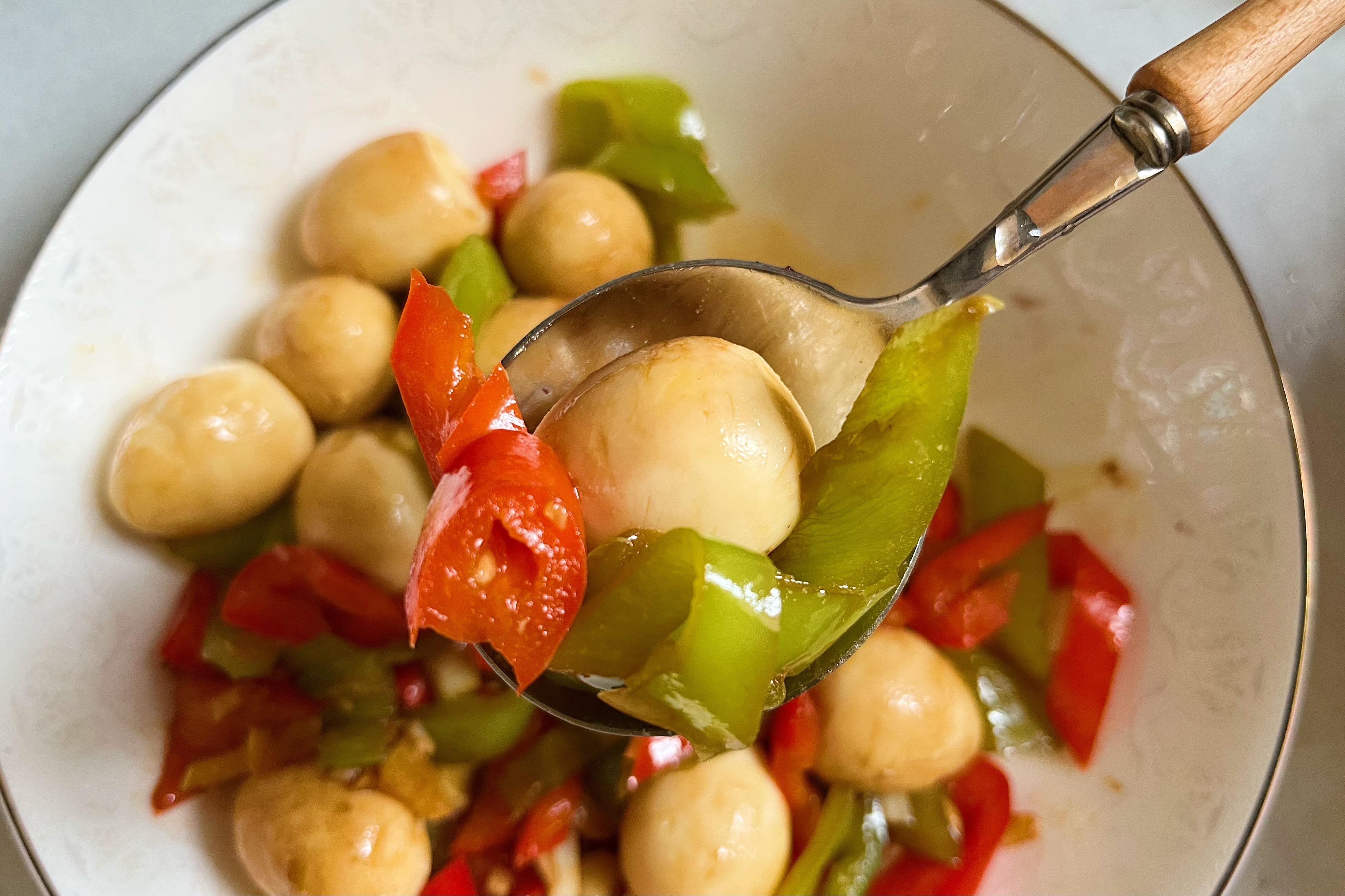 鵪鶉蛋被稱爲“卵中佳品”,小小一顆,濃縮的卻都是精華。尖椒中富含維生素C,搭配鵪鶉蛋一起做個小炒,既能補充優質蛋白質,也能補充維C,是小寒不可錯過的一道佳餚。